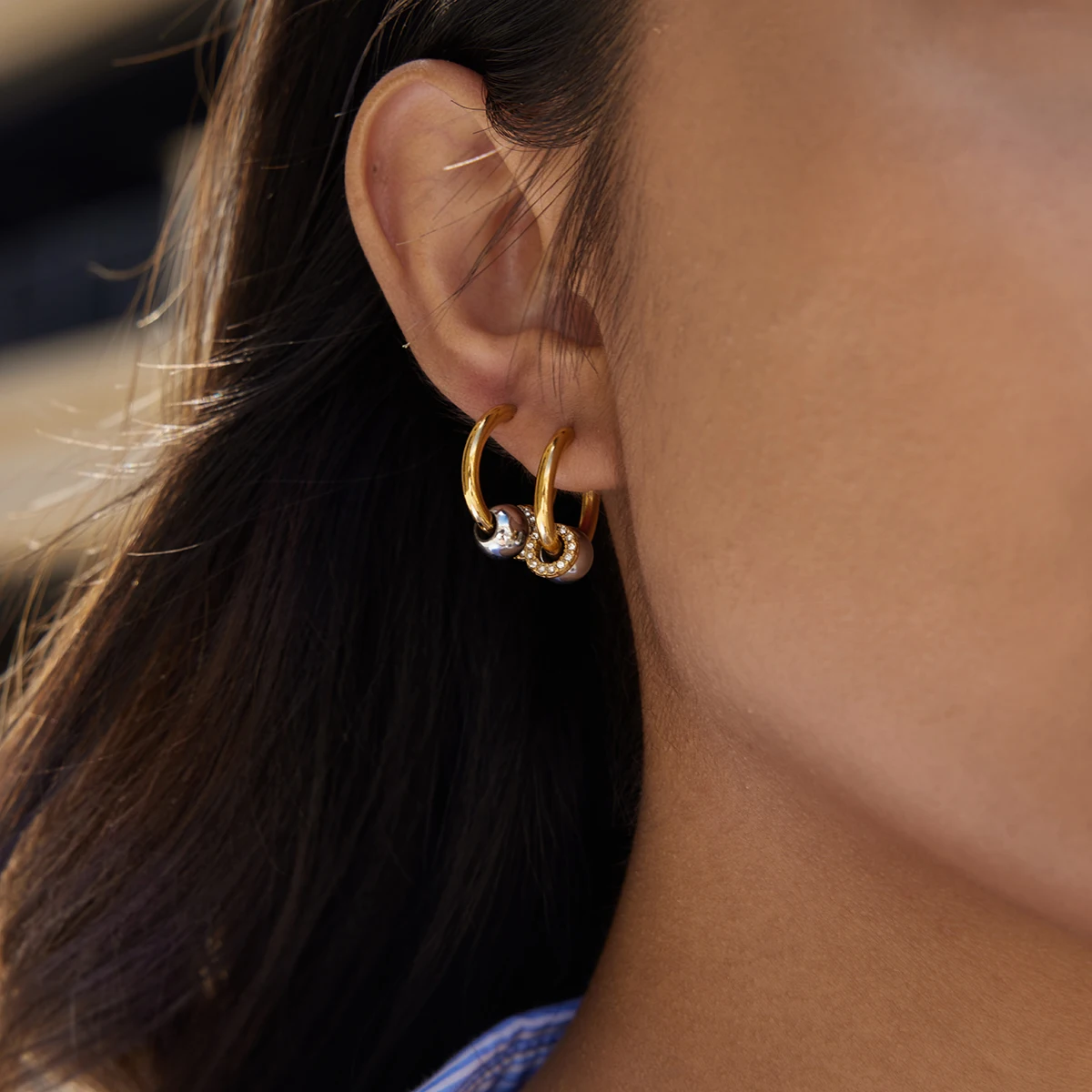 - Features a modern circular hoop shape with a small, sparkling disc encrusted with rhinestones or imitation diamonds for added glamour and visual appeal.