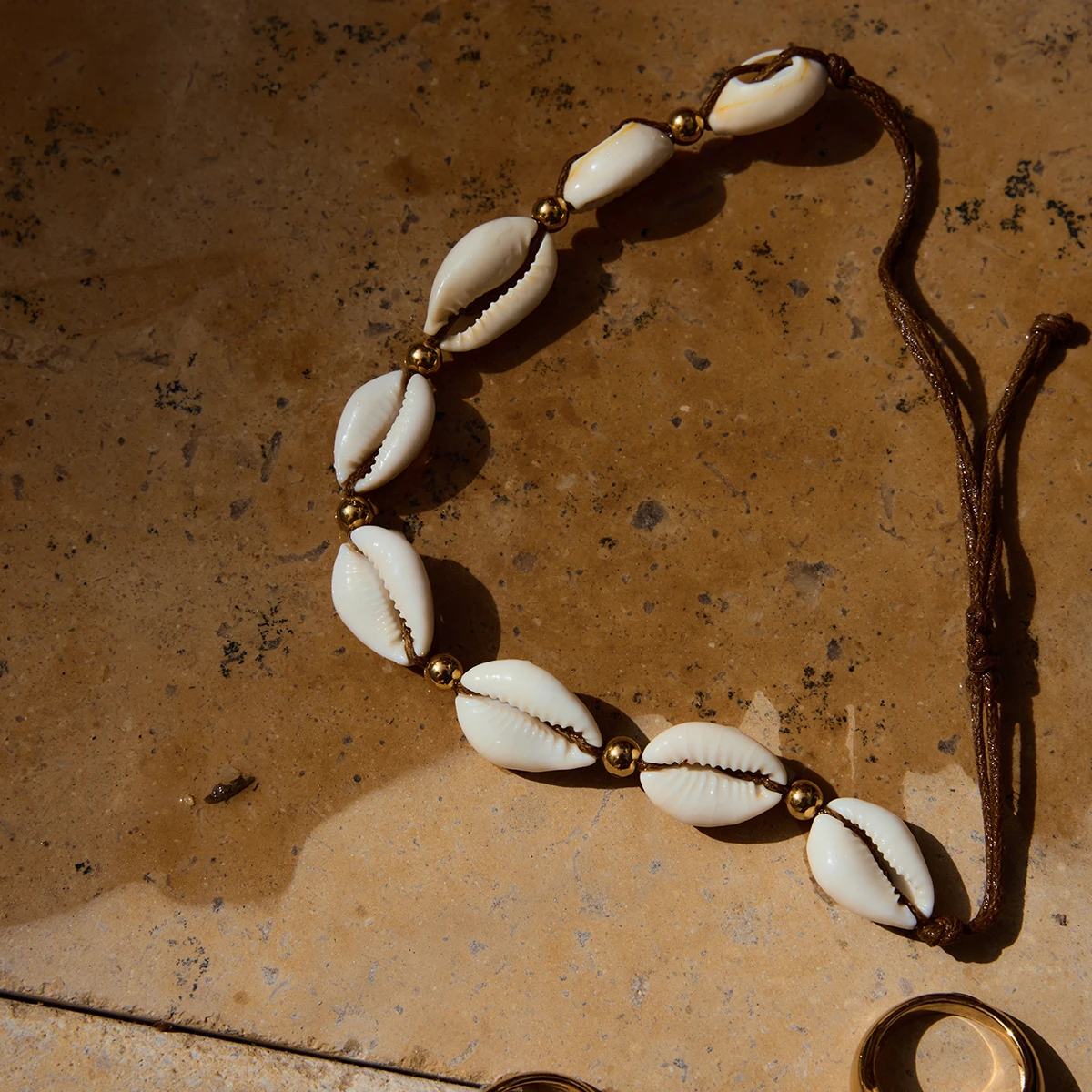 Discover the perfect accessory to elevate your beach or holiday look with this stylish anklet. Crafted from durable stainless steel with a PVD gold finish, it boasts long-lasting color and resistance to scratches and fading. The delicate string of white shell beads, shaped like small, curved cowries, offers a natural, glossy sheen that captures summer’s carefree spirit. Interspersed with tiny, round gold-colored beads, this anklet combines natural textures with a sleek metallic shine. Its adjustable wax wire design ensures a comfortable fit and easy customization, making it ideal for casual or beachwear. Lightweight at just 15 grams, this piece perfectly complements your ankle elegance and adds a touch of summery sophistication to any outfit.