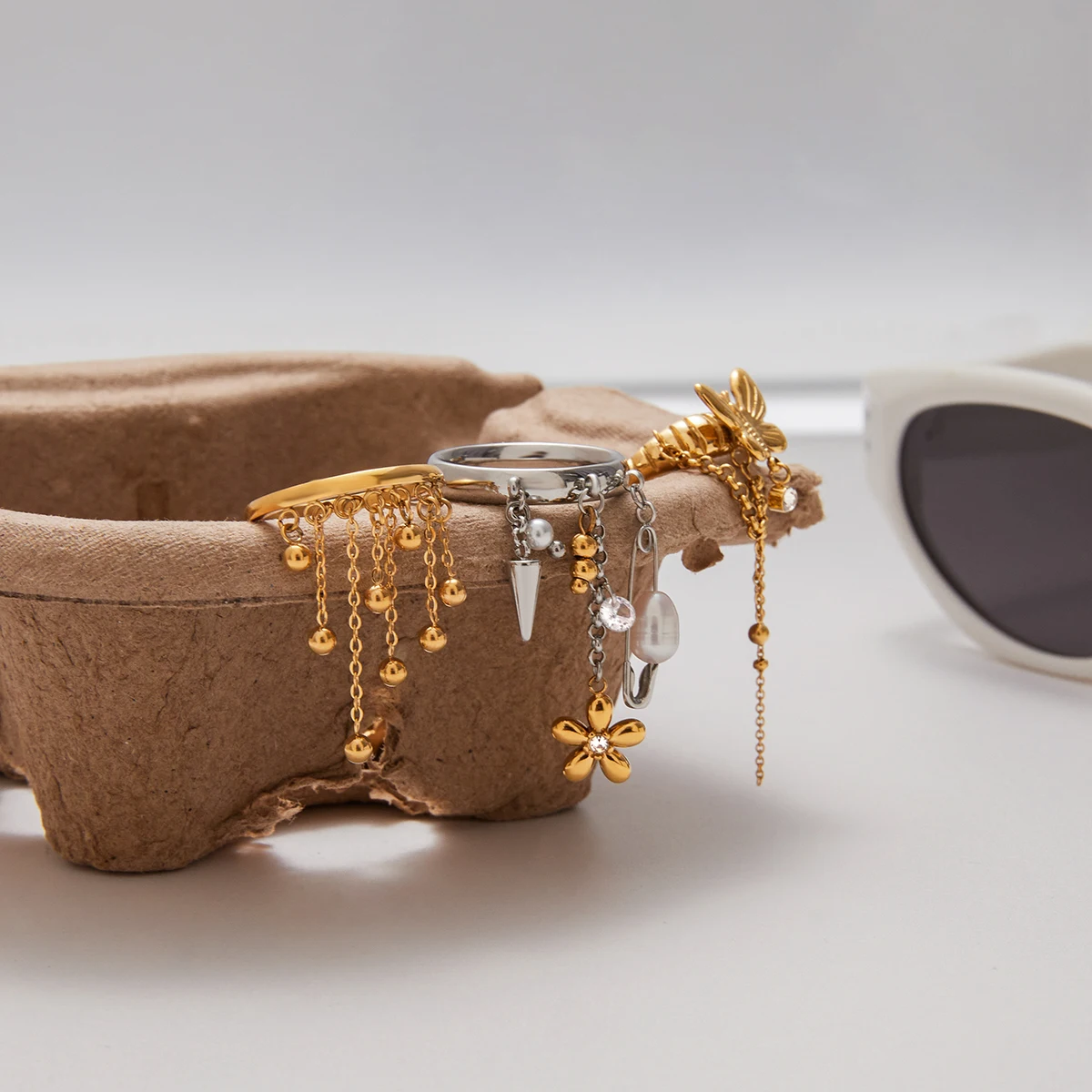 - Crafted from high-quality stainless steel with a durable gold finish, this ring offers long-lasting shine and resilience suitable for daily wear or special events.