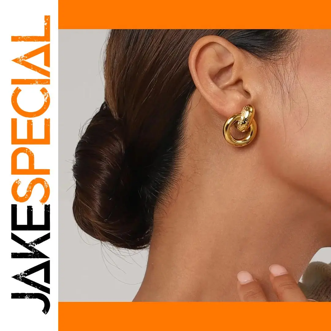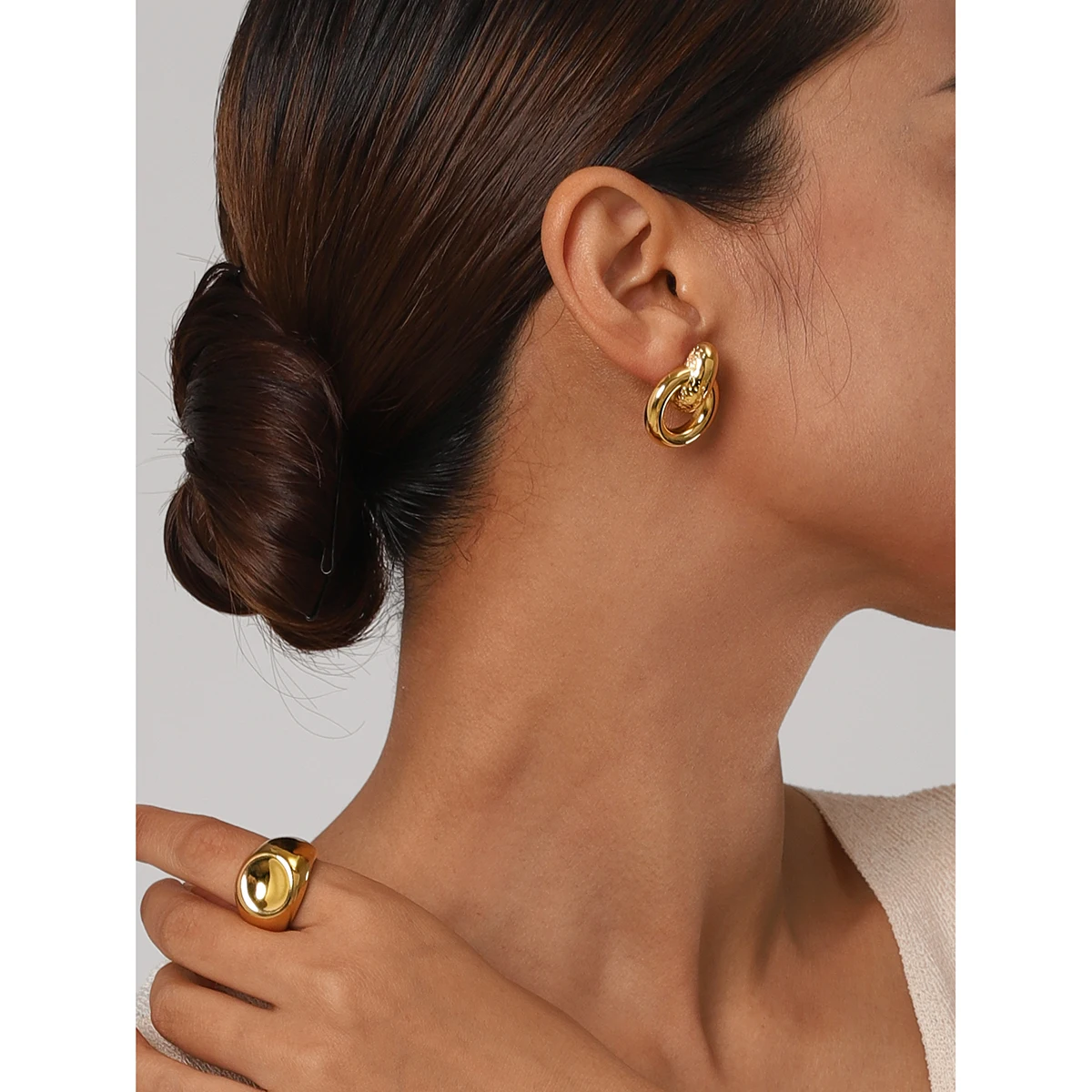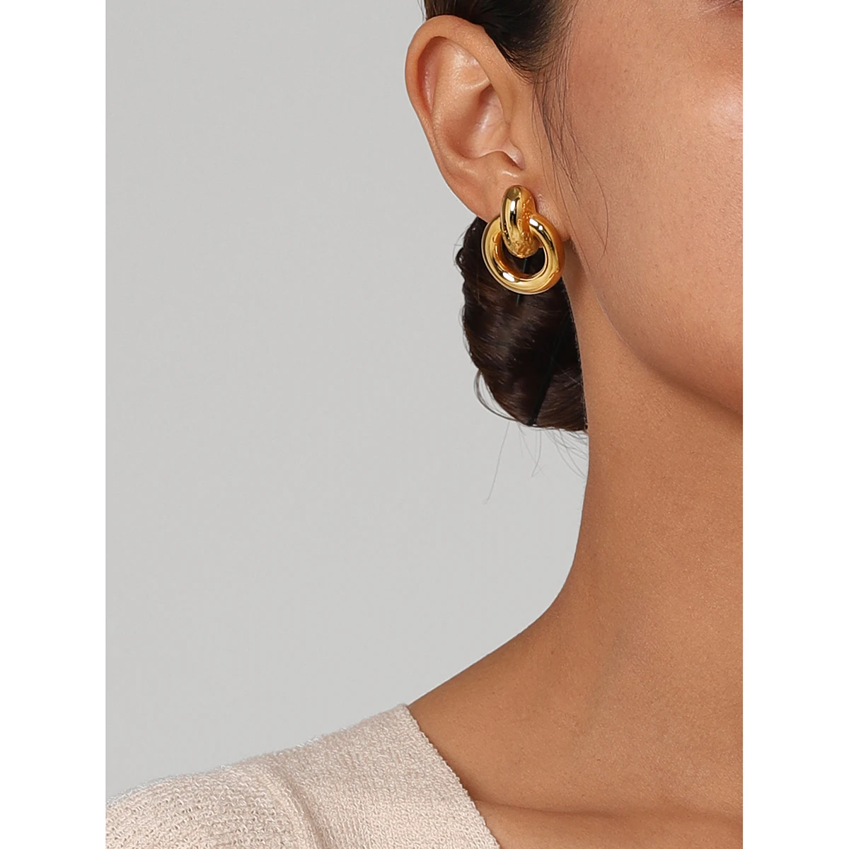 Experience the elegance and modern charm of these minimalist round hollow stud earrings. Crafted from durable stainless steel with a luxurious PVD gold coating, they offer a vibrant, long-lasting finish that resists fading, scratches, and tarnishing. Their geometric, layered design creates a bold yet refined look, perfect for elevating both casual and formal outfits. These earrings are waterproof and free from nickel, lead, and cadmium, making them ideal for sensitive skin and daily wear. With a weight of approximately 15 grams, their substantial size makes a statement without overwhelming your style. Designed specifically for women, they blend contemporary fashion with premium quality craftsmanship, ensuring you feel confident and elegant with every wear.