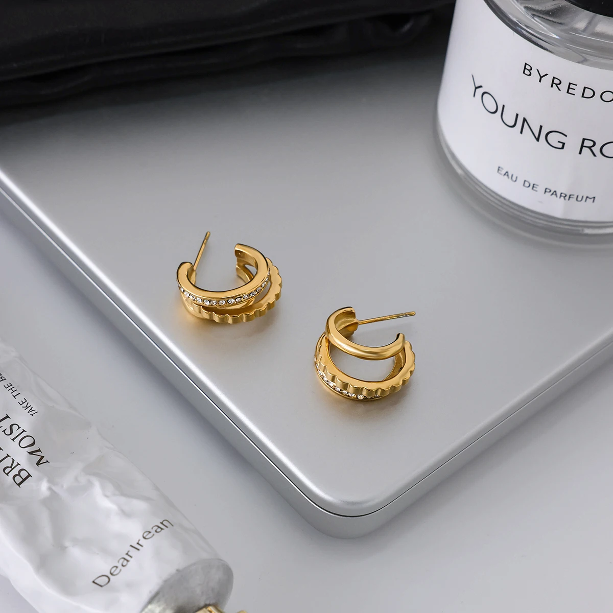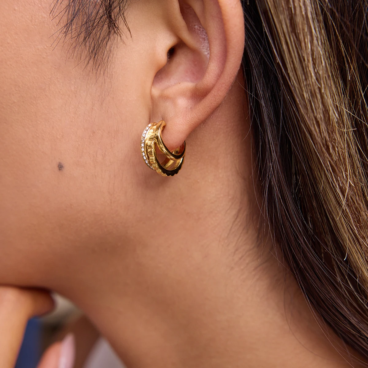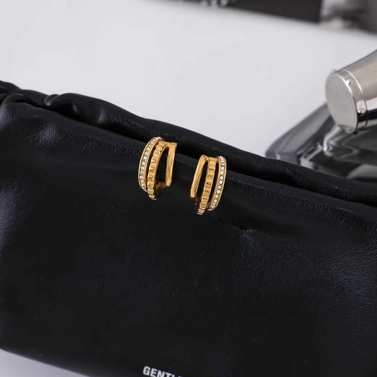 Stainless Steel Gold Earrings with Rhinestones