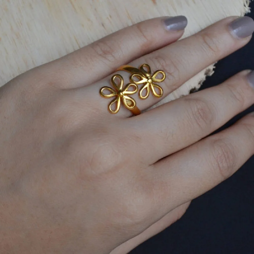 Discover the elegance of this minimalist five-petal hollow ring crafted from durable stainless steel with a PVD gold finish that resists fading and scratching. Weighing approximately 15 grams, it features a slim 2mm wide band and a delicate skeleton-shaped design, adding a modern yet feminine touch. Waterproof, nickel, lead, and cadmium-free, this versatile piece is perfect for enhancing any outfit, especially for party occasions. Its refined, trendy style makes it a timeless addition to your jewelry collection, offering both comfort and sophistication. Whether worn alone or stacked, this beautifully crafted ring exudes simplicity and elegance for everyday wear or special moments.