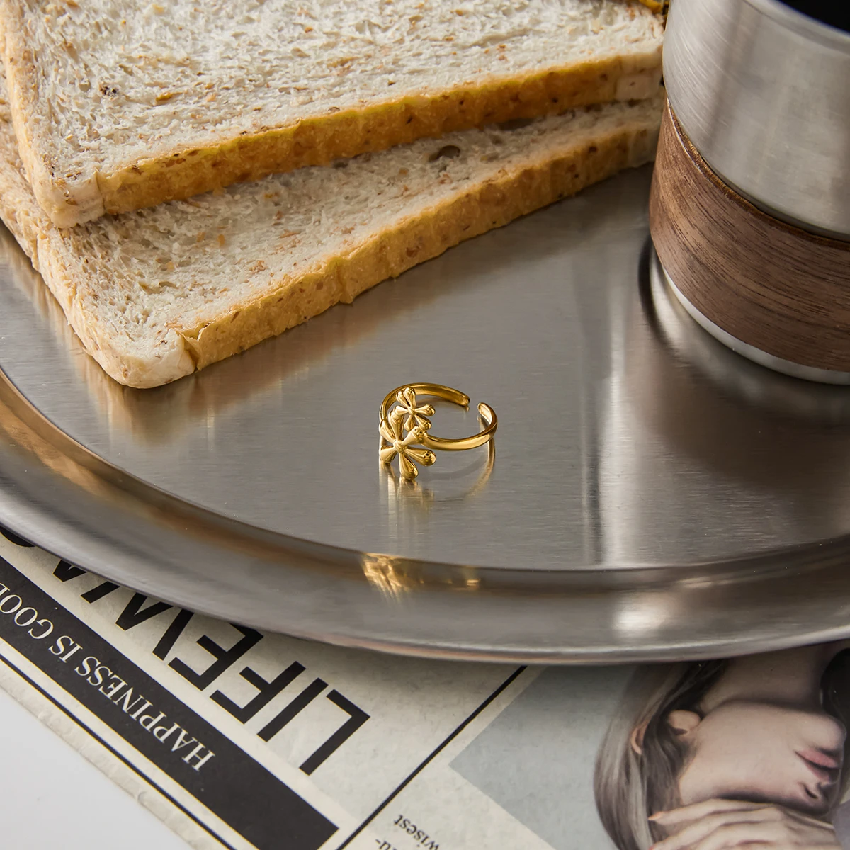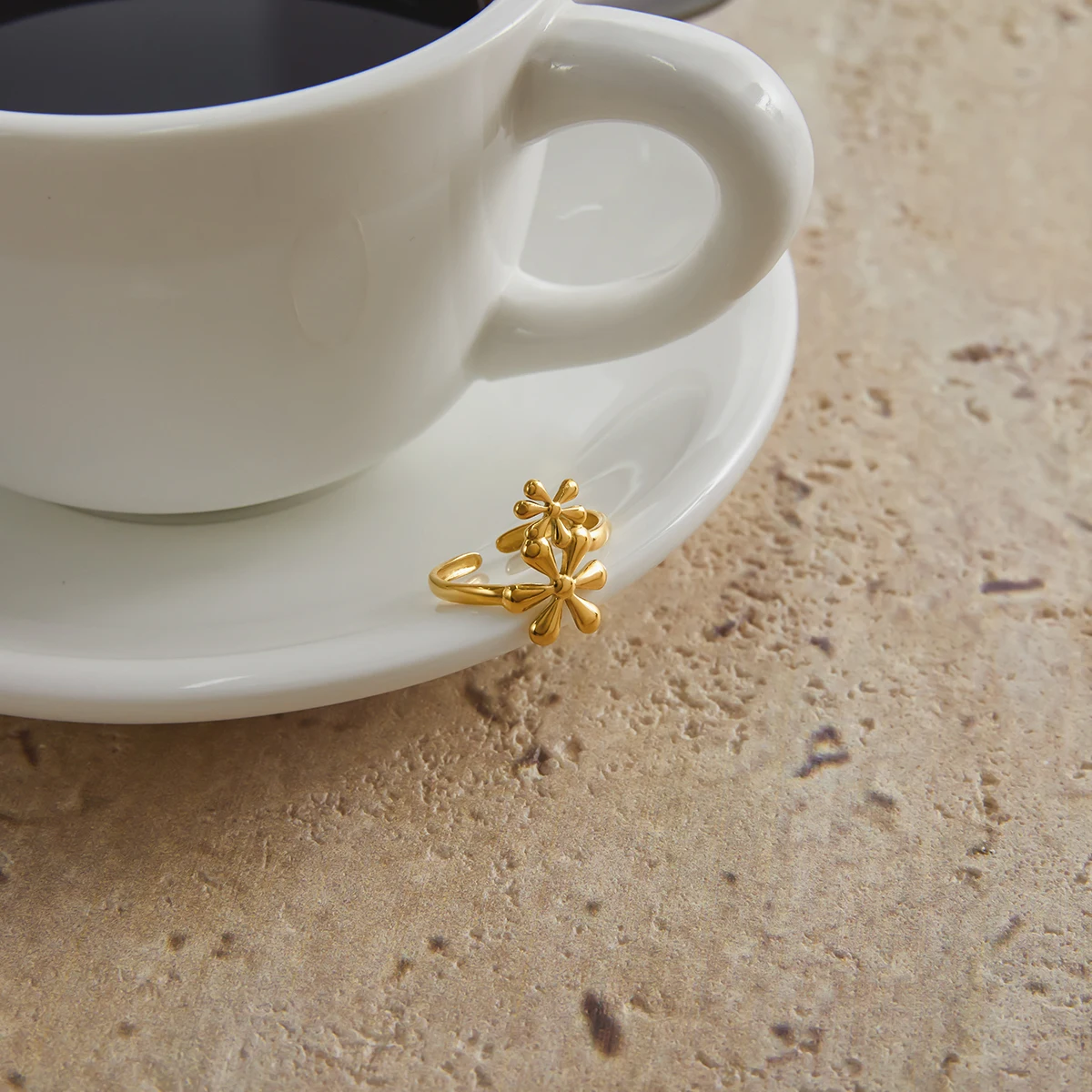 This Trendy Gold Flower-Shaped Stainless Steel Ring