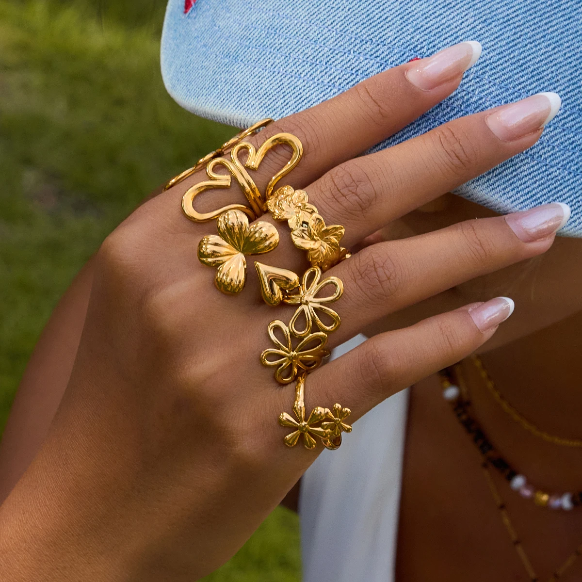Imagine yourself confidently showcasing this beautiful, durable stainless steel ring, adding a fresh botanical touch to your everyday outfits. Its elegant gold finish and playful flower motif make it a perfect gift or personal fashion statement. Designed for women who value modern style combined with lasting quality, this piece promises to become a cherished accessory. Whether you're dressing up for an outing or enjoying casual moments, feel the confidence that comes with wearing a piece crafted to enhance your natural beauty and sense of style. Don't wait—enhance your jewelry collection with this trendy floral ring now.