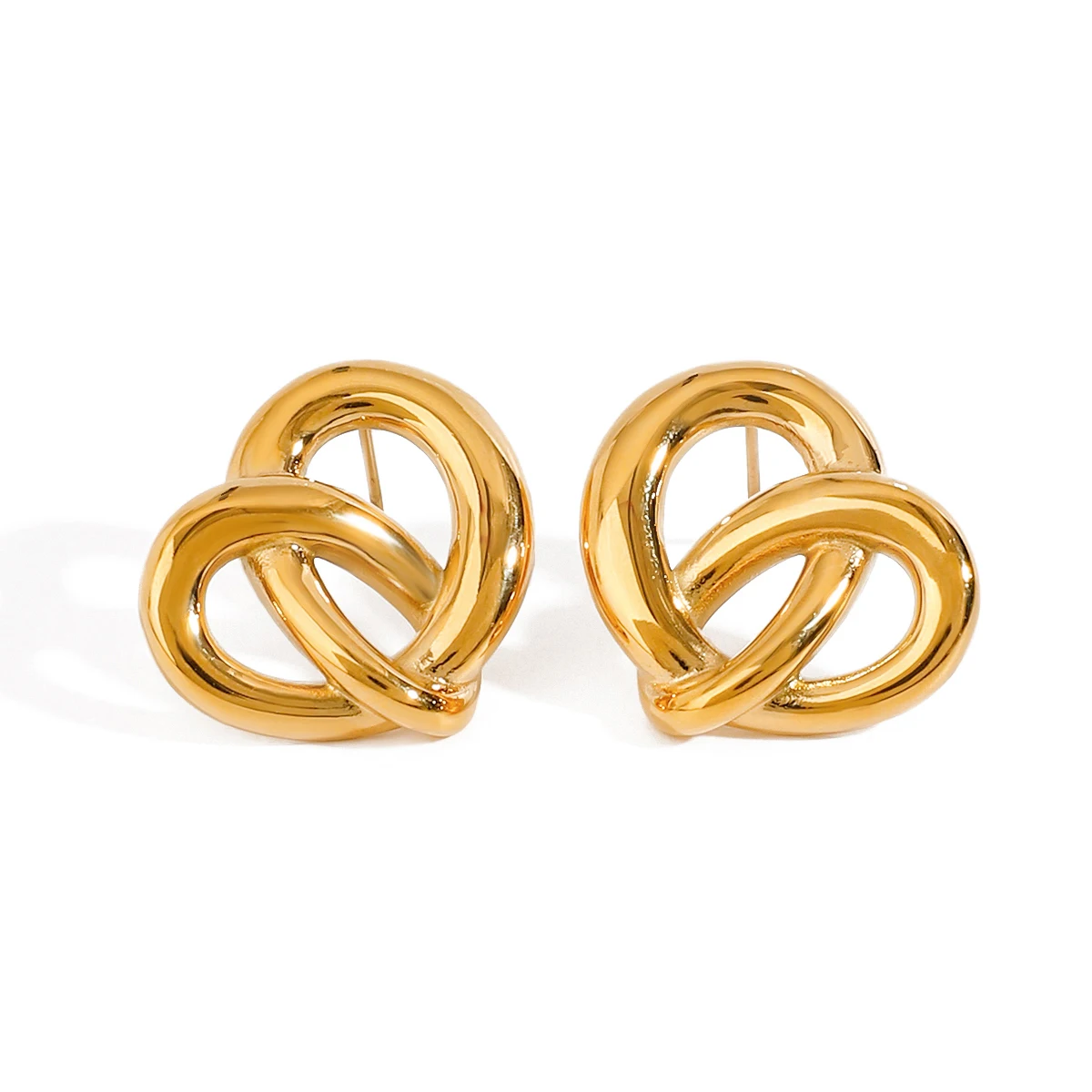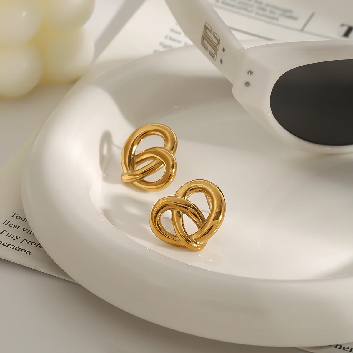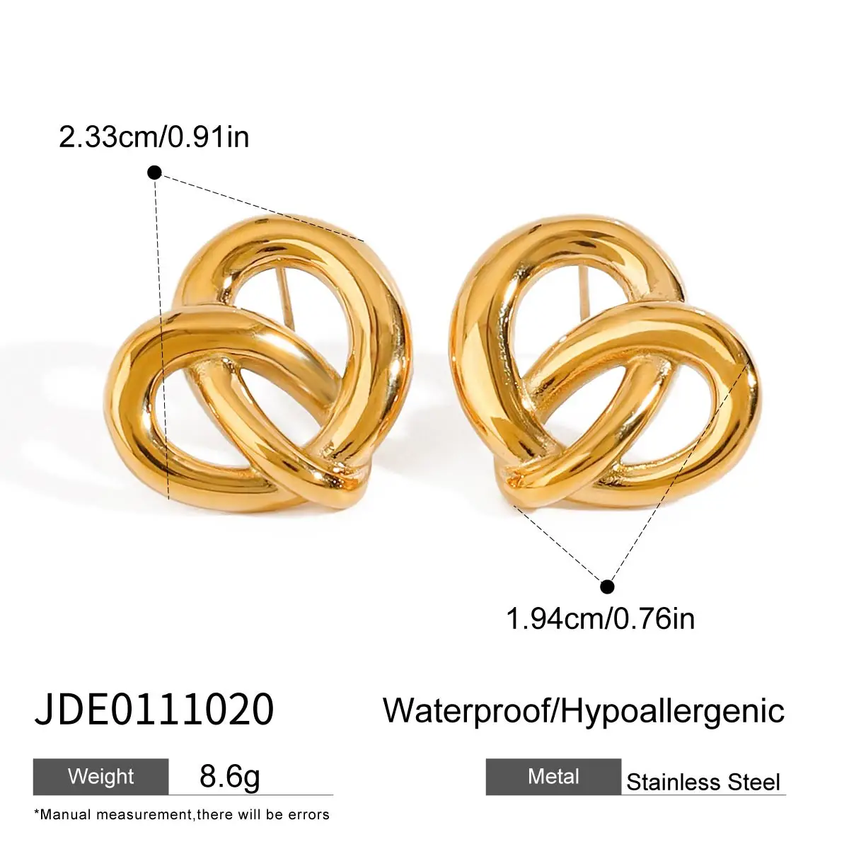 Experience the elegance of these this stainless steel gold heart earrings, designed to elevate your everyday style with a touch of modern charm. Measuring approximately 18mm in diameter, these earrings feature a sleek, intertwined heart silhouette that combines minimalism with classic romance. The polished gold finish creates a luminous, reflective surface, exuding luxury and sophistication. Lightweight and comfortable, they are perfect for daily wear—whether for work, casual outings, or special occasions. The secure post back ensures they stay firmly in place, making them ideal for busy lifestyles. These versatile earrings add a refined touch to any look, showcasing your unique style effortlessly.