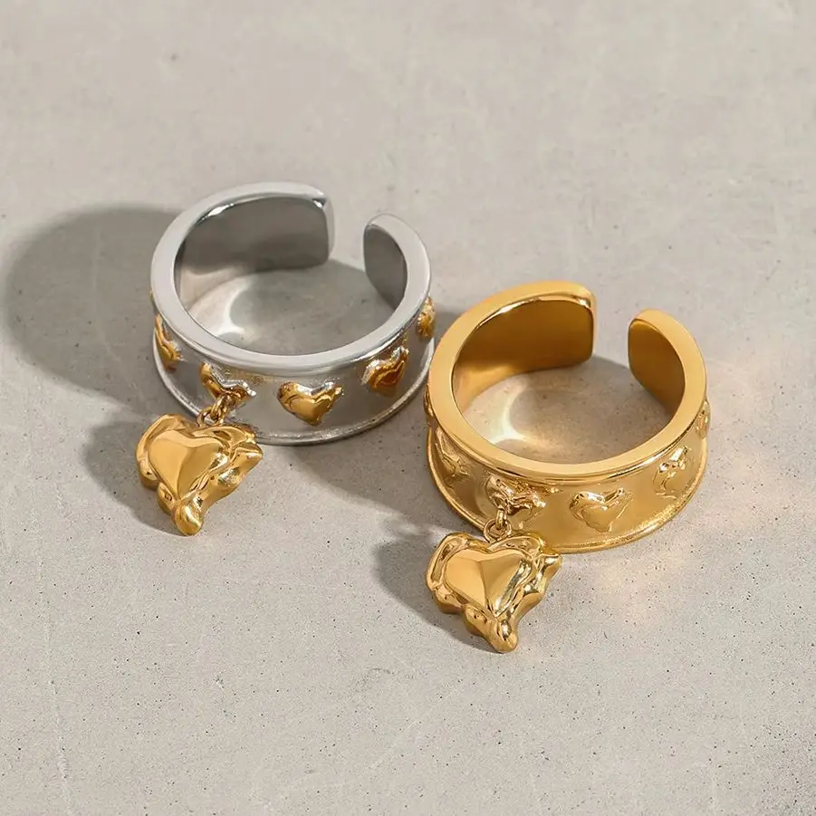Experience the perfect blend of romantic charm and modern style with this elegant stainless steel open-heart ring. Crafted with a high-quality PVD gold finish, it boasts excellent durability, resisting fading and scratching for years of wear. Designed to catch attention, the ring features a sleek 2mm wide band adorned with delicate heart-shaped motifs that symbolize love and affection. Its adjustable open design ensures a comfortable fit for any finger size, making it versatile for various occasions such as parties, dates, or stylish outings. Lightweight at just 15 grams, this ring offers both comfort and sophistication. Whether you’re treating yourself or searching for a meaningful gift, this piece makes a bold, trendy statement with a romantic flair that complements any fashion style effortlessly.