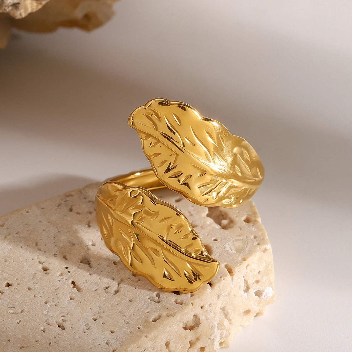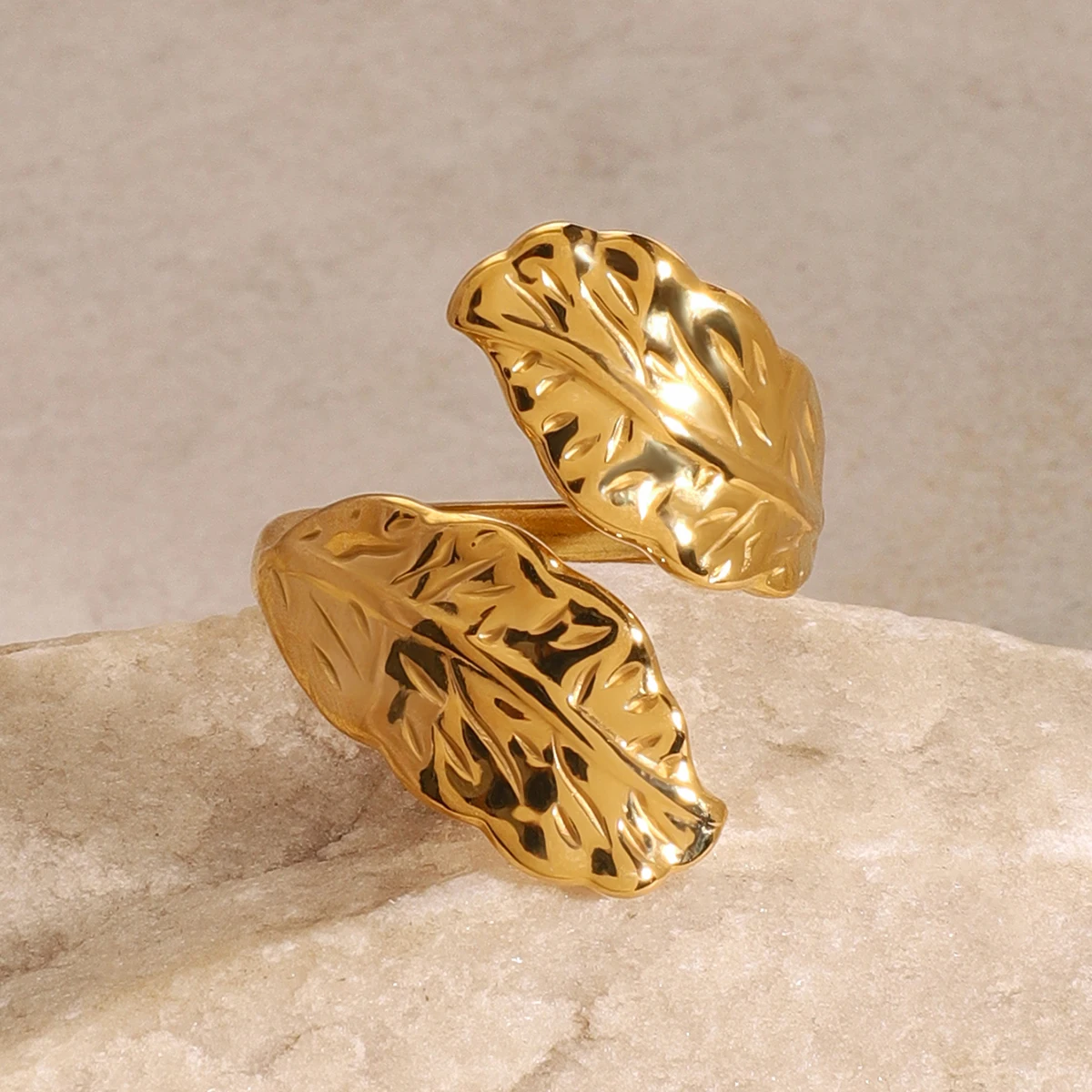Enhance your jewelry collection with this adjustable women’s winding ring, crafted from durable stainless steel with a PVD gold finish that resists scratching and maintains its shine for years. Featuring an elegant ribbed leaf opening design, the ring showcases intricate textured veins and ridges, creating a realistic botanical-inspired aesthetic. Weighing only 8.4 grams, its versatile style makes it perfect for various occasions, including weddings. The open-ended, adjustable design ensures a comfortable fit, while its waterproof, nickel-free, lead-free, and cadmium-free construction makes it suitable for sensitive skin. Model number JDRW2409018 highlights its refined, fashion-forward appeal for modern elegance.