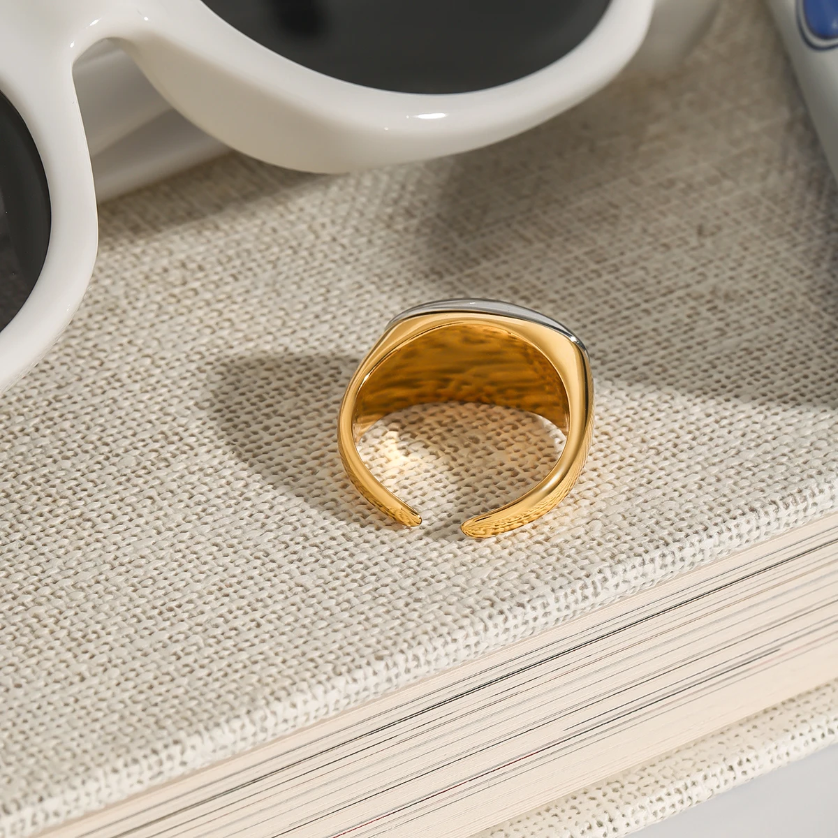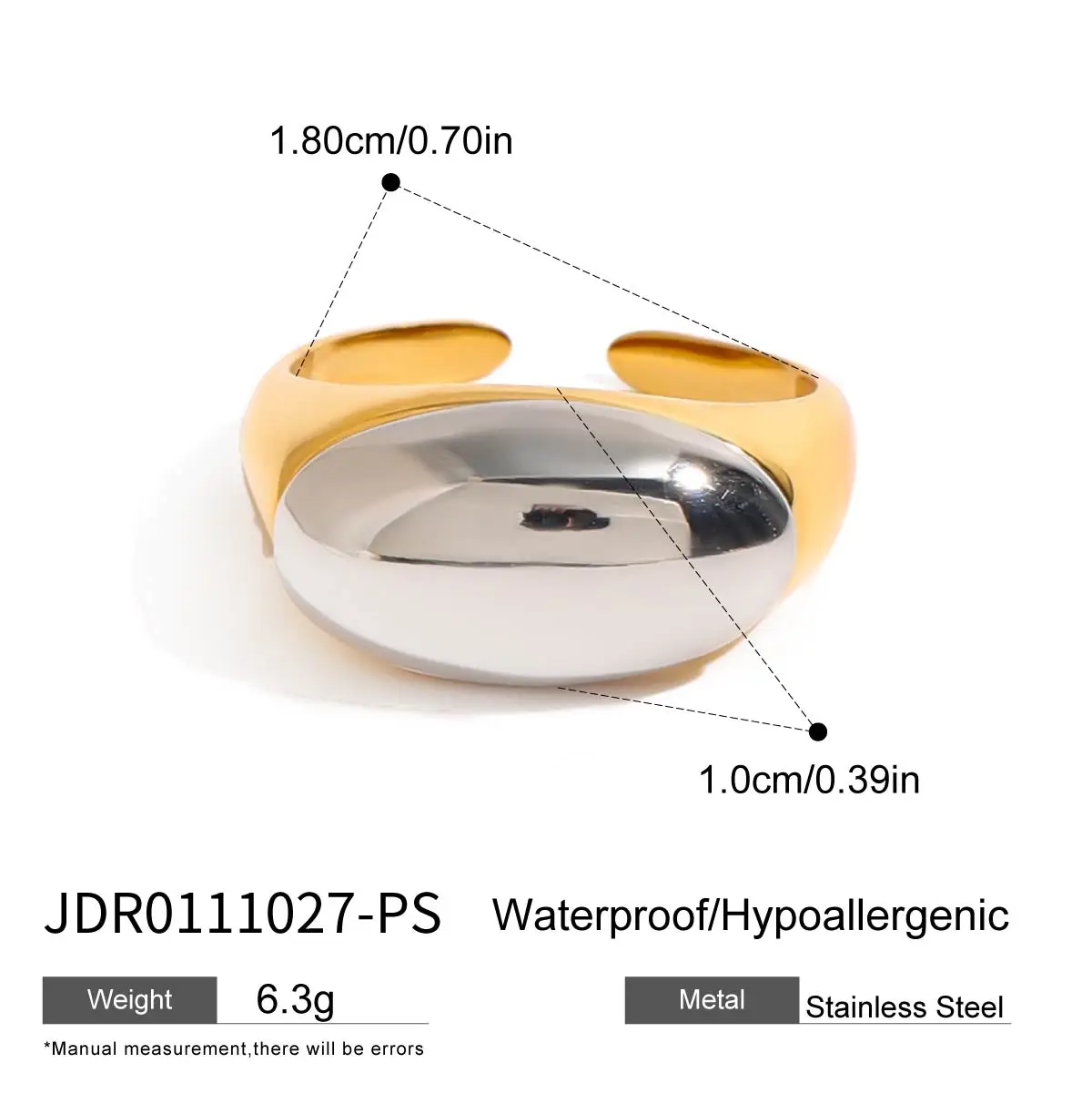 Step into modern elegance with this minimalist large light oval ring, crafted from durable stainless steel coated with PVD gold for long-lasting shine. The sleek, mirror-like surface reflects light beautifully, creating a sophisticated yet understated look. Its smooth, elongated oval shape emphasizes clean lines and contemporary style, making it perfect for both casual and formal occasions. Whether you're dressing up for a party or adding a subtle touch of elegance to everyday wear, this ring offers versatility without compromising on durability. The lightweight 15-gram design ensures comfort, while the adjustable feature provides a perfect fit for every finger. Trust in its waterproof and hypoallergenic qualities, making it an ideal accessory for all-day wear and various lifestyles.