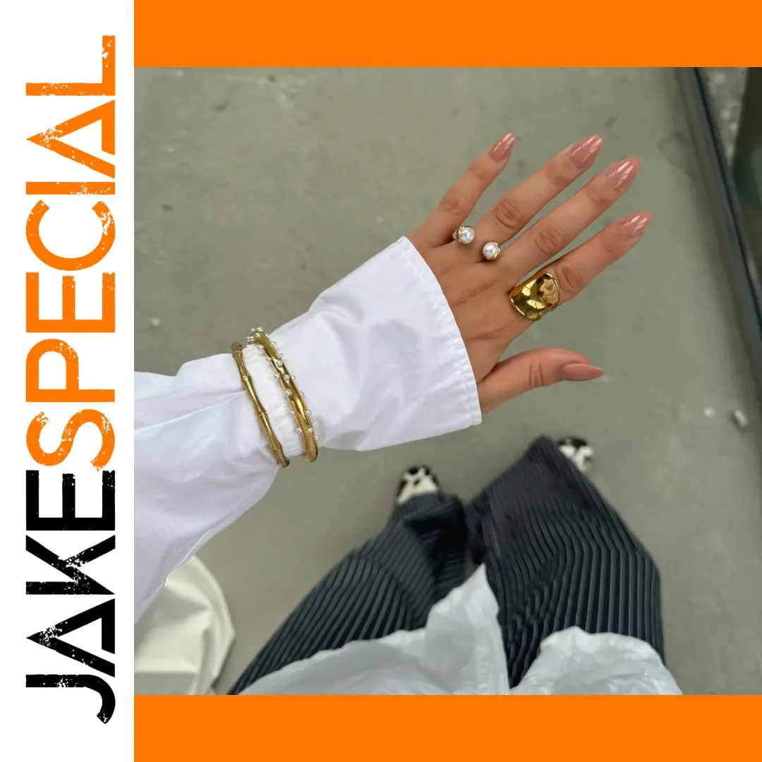This Stylish Gold Stainless Steel Pearl Ring for Women