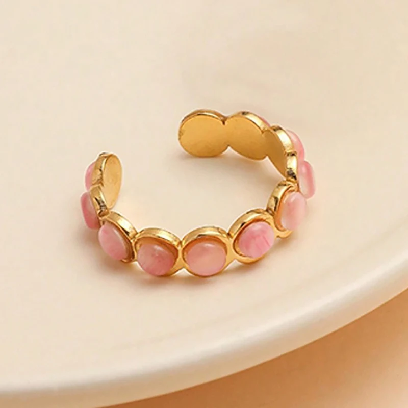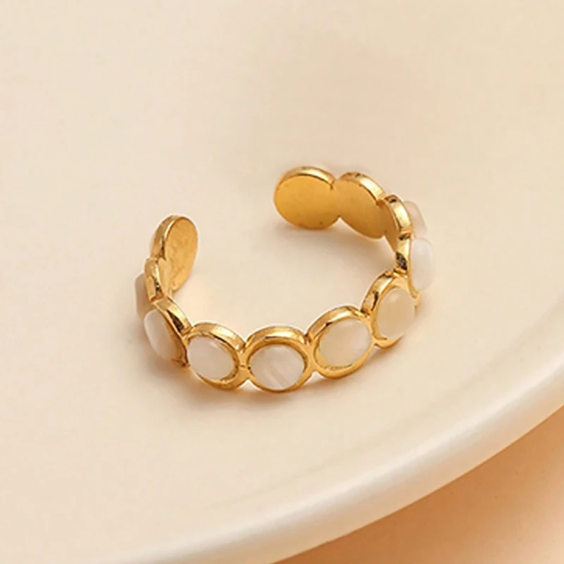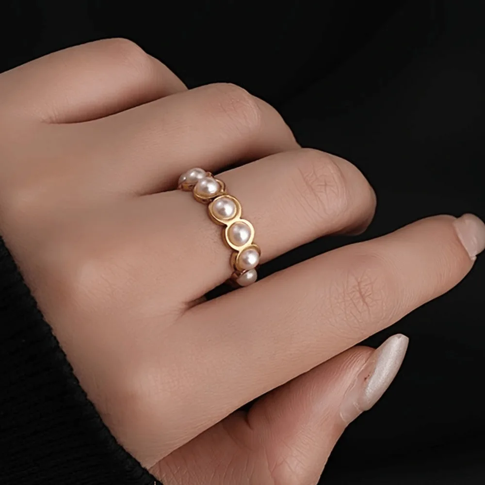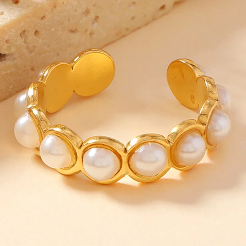 Elevate your style with this resizable stainless steel ring featuring a luxurious 18k gold plating, available in silver and gold options. Adorned with an elegant imitation pearl as the centerpiece, this round-shaped ring effortlessly combines classic sophistication with modern flair. Its hypoallergenic, rust-proof, and fade-resistant design makes it perfect for daily wear across all four seasons, ideal for weddings, parties, engagements, birthdays, and anniversaries. Whether gifting to a loved one or treating yourself, this versatile accessory adds a touch of timeless elegance to any outfit, making it a must-have for fashionable, everyday sophistication.