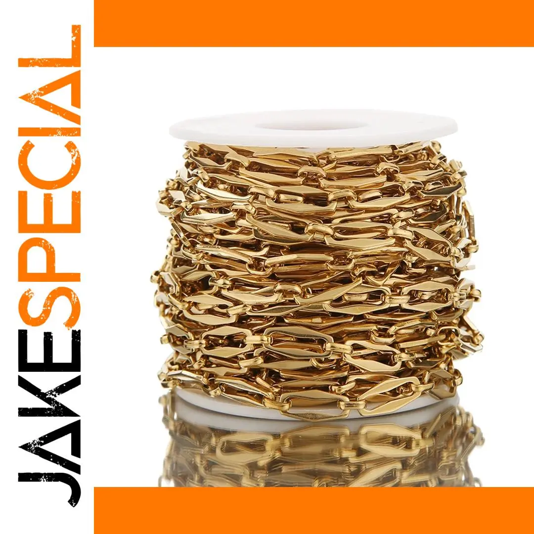 Imagine elevating your jewelry creations with this stunning gold-tone rhombus chain. Crafted from durable stainless steel, this 1-meter chain features sleek, flat links with a geometric, modern appeal. The polished, reflective surface adds a luxurious touch that will enhance necklaces, bracelets, or custom designs. Its fine thickness of approximately 0.1 mm allows for delicate, lightweight pieces or layered styles. The links measure about 7 mm in width and 15 mm in length, interconnected in an elegant, continuous pattern. Easy to work with, this chain seamlessly integrates with various jewelry findings and components. Whether you’re a professional jeweler or DIY enthusiast, this chain offers a versatile, high-quality base for creating beautiful, personalized accessories that will last for years to come.