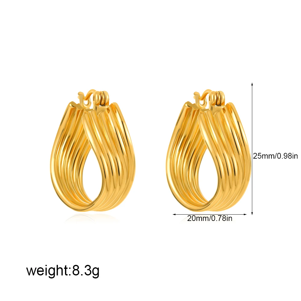 Experience the charm of these sophisticated hoop earrings, crafted from stainless steel with a stunning gold-tone finish. Their multi-layered, textured design features a modern geometric pattern with a subtle ripple and twisting effect, adding a dynamic visual appeal. Perfectly sized for comfort, these small to medium hoops snugly fit against the earlobe, making them ideal for both daily wear and special occasions. Their shiny, metallic surface exudes luxury, elevating any fashionable look. Whether you’re attending a wedding, party, or celebrating a birthday, these earrings bring a touch of elegance and contemporary style. Designed with safety and durability in mind, they are waterproof and free from high-concern chemicals, ensuring worry-free wear for any celebration or casual outing.