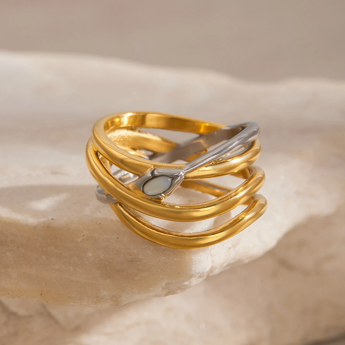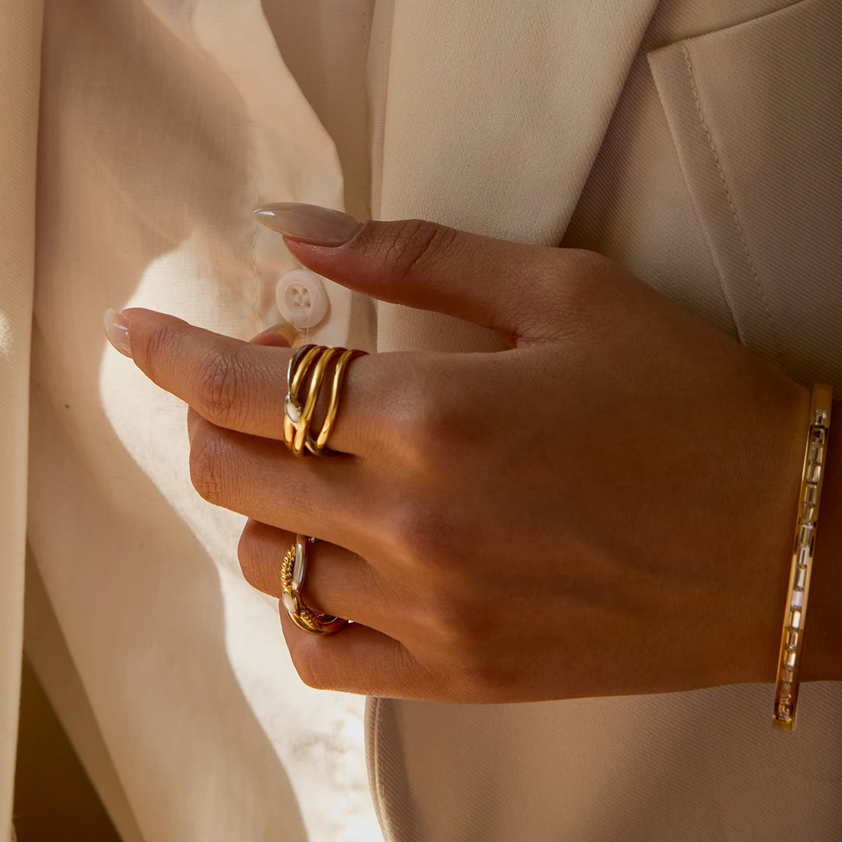 Experience elegance with this minimalist stainless steel stackable serpentine ring, crafted with durable PVD gold finish for a long-lasting shine that resists fading and scratches. Measuring 2mm in width and available in sizes 6, 7, and 8, this stylish piece features a sleek smooth line design with a hollow serpentine pattern and tension setting, perfect for adding a sophisticated touch to your party attire. Weighing approximately 15 grams, the ring is waterproof, nickel-free, lead-free, and cadmium-free, making it a luxurious yet practical accessory for modern women who appreciate refined, contemporary jewelry.