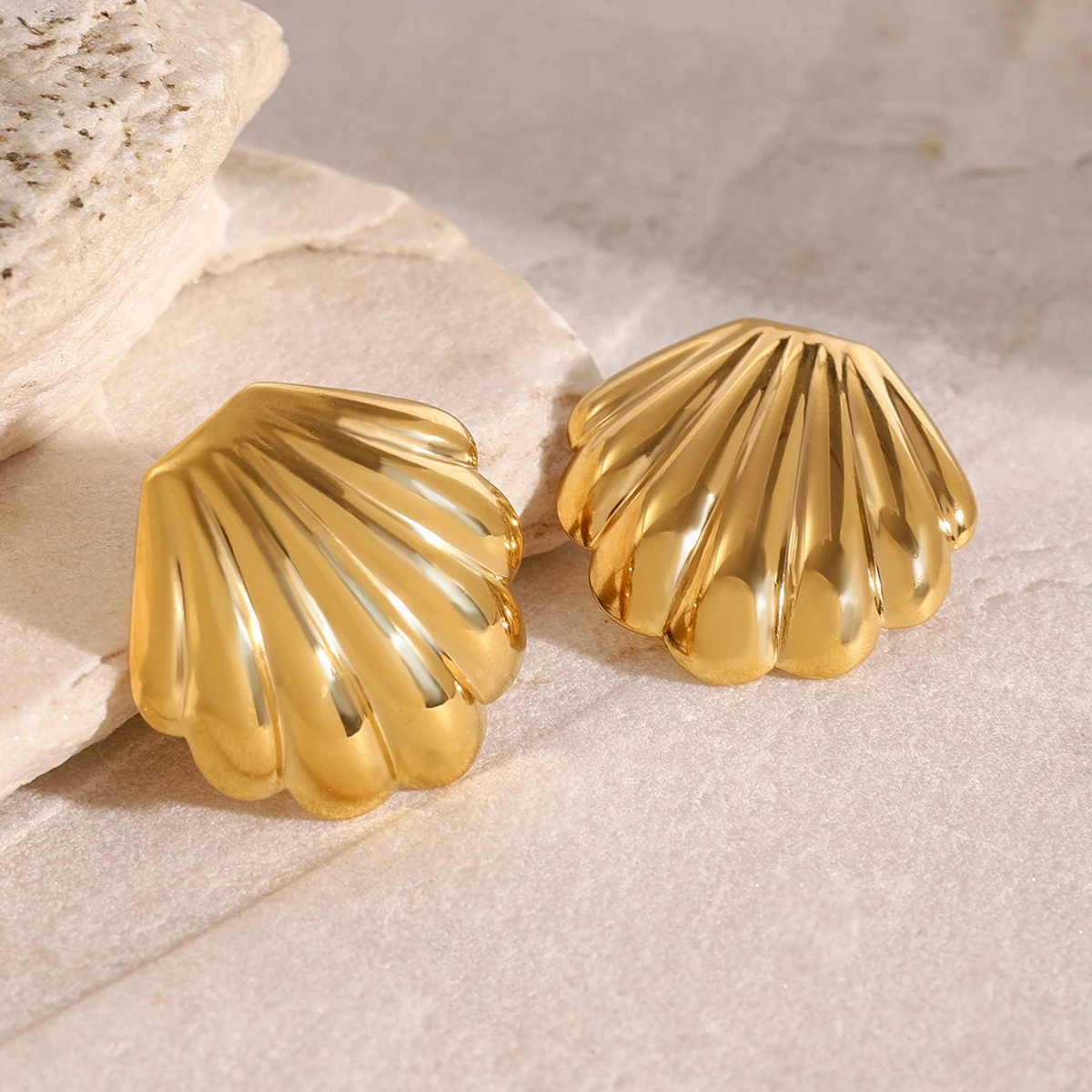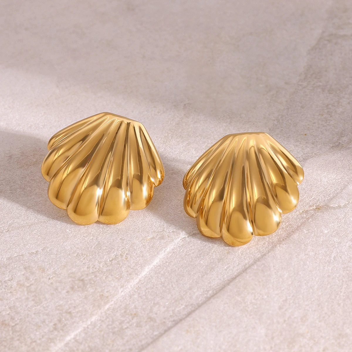Enhance your style with these stainless steel stud earrings, model JDEW2408016, featuring a textured, three-dimensional shell shape with radiating rounded ridges that create a trendy animal pattern. Crafted from high-quality stainless steel for durability and a flawless surface, these earrings are coated with a PVD finish for a glossy, scratch-resistant, and luxurious gold hue that maintains its shine over time. Waterproof and skin-friendly, they are perfect for daily wear, offering both elegance and comfort. The secure push-back fastening ensures they stay comfortably in place, making these earrings an ideal addition to your collection for any occasion, blending sophistication with playful charm.