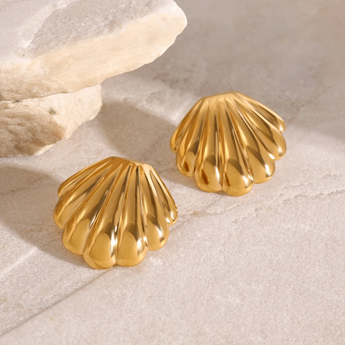 Stainless Steel Gold Shell Earrings Model JDEW2408016