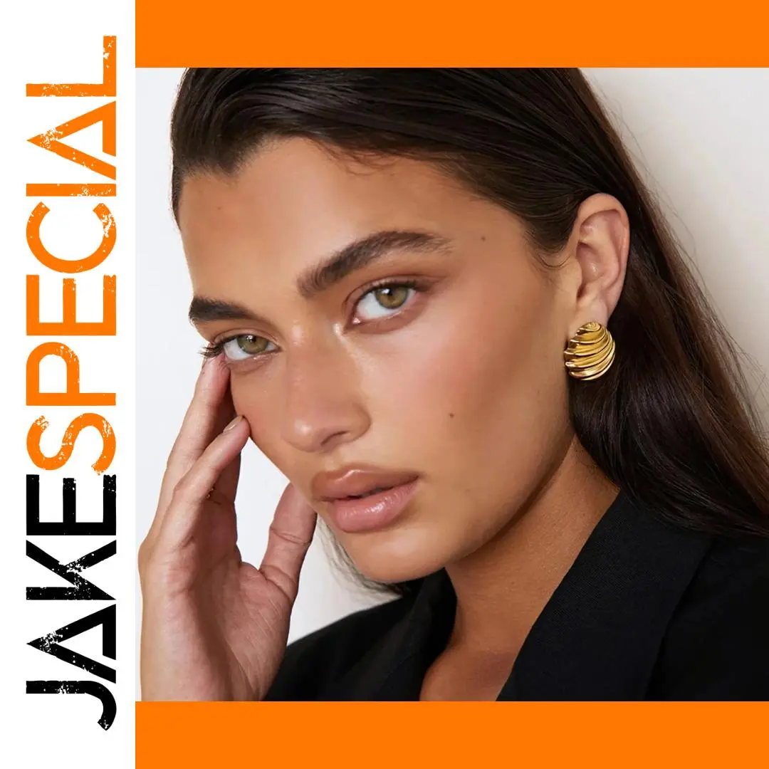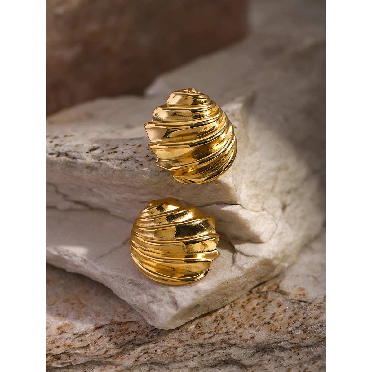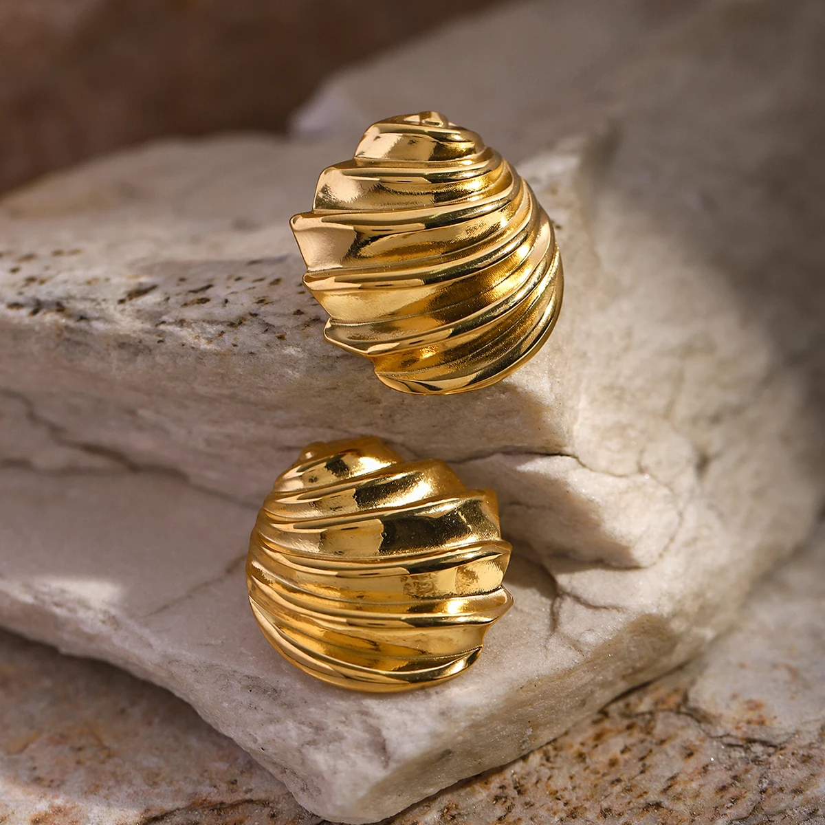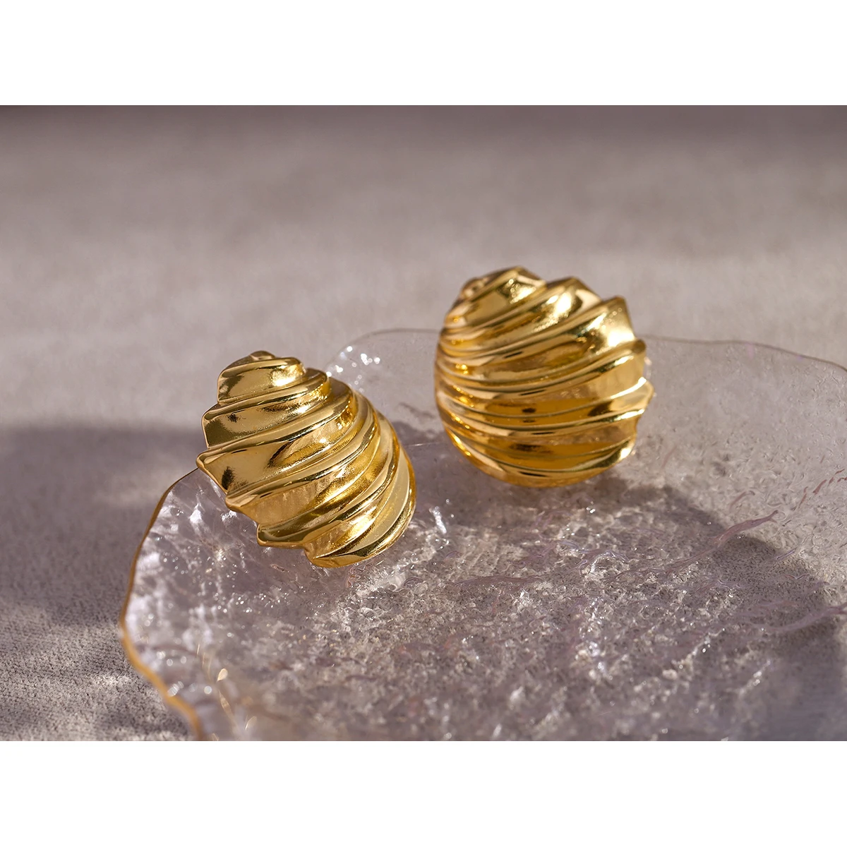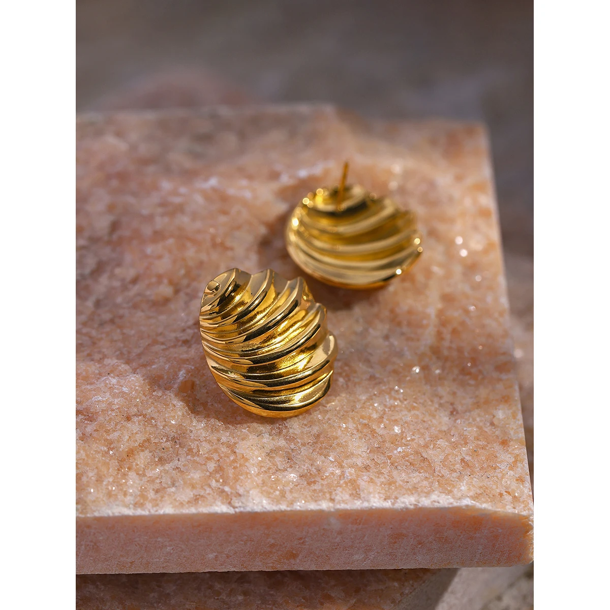 Experience the allure of these stunning stainless steel earrings with a PVD gold finish, designed to elevate your style effortlessly. The distinctive beveled, layered, wave-like round shape offers a contemporary yet timeless appeal, perfect for both casual and formal occasions. Crafted for longevity, these water-resistant earrings are made from durable stainless steel, with a polished, reflective gold surface that resists fading, scratches, and tarnish. Weighing only 15 grams, they provide comfort without sacrificing boldness, covering a significant portion of the earlobe for a sophisticated look. Their classic stud design ensures easy wear, making them an essential addition to your jewelry collection you’ll reach for repeatedly.