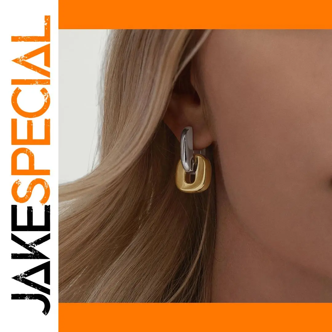 Immerse yourself in the contemporary elegance of this pair of stainless steel earrings. Designed with a modern, minimalist aesthetic, these earrings feature a striking two-tone oval splicing design that effortlessly complements any outfit. The polished silver upper component contrasts beautifully with the warm, rich gold-toned lower piece, creating a sophisticated visual effect. With a weight of just 15 grams, they strike the perfect balance between comfort and style. Crafted from high-quality stainless steel with durable PVD gold coating, these earrings are waterproof, scratch-resistant, and built to last for years without fading. Their sleek, geometric form is ideal for adding a trendy touch to both casual and formal wear, making you feel confident and stylish wherever you go.