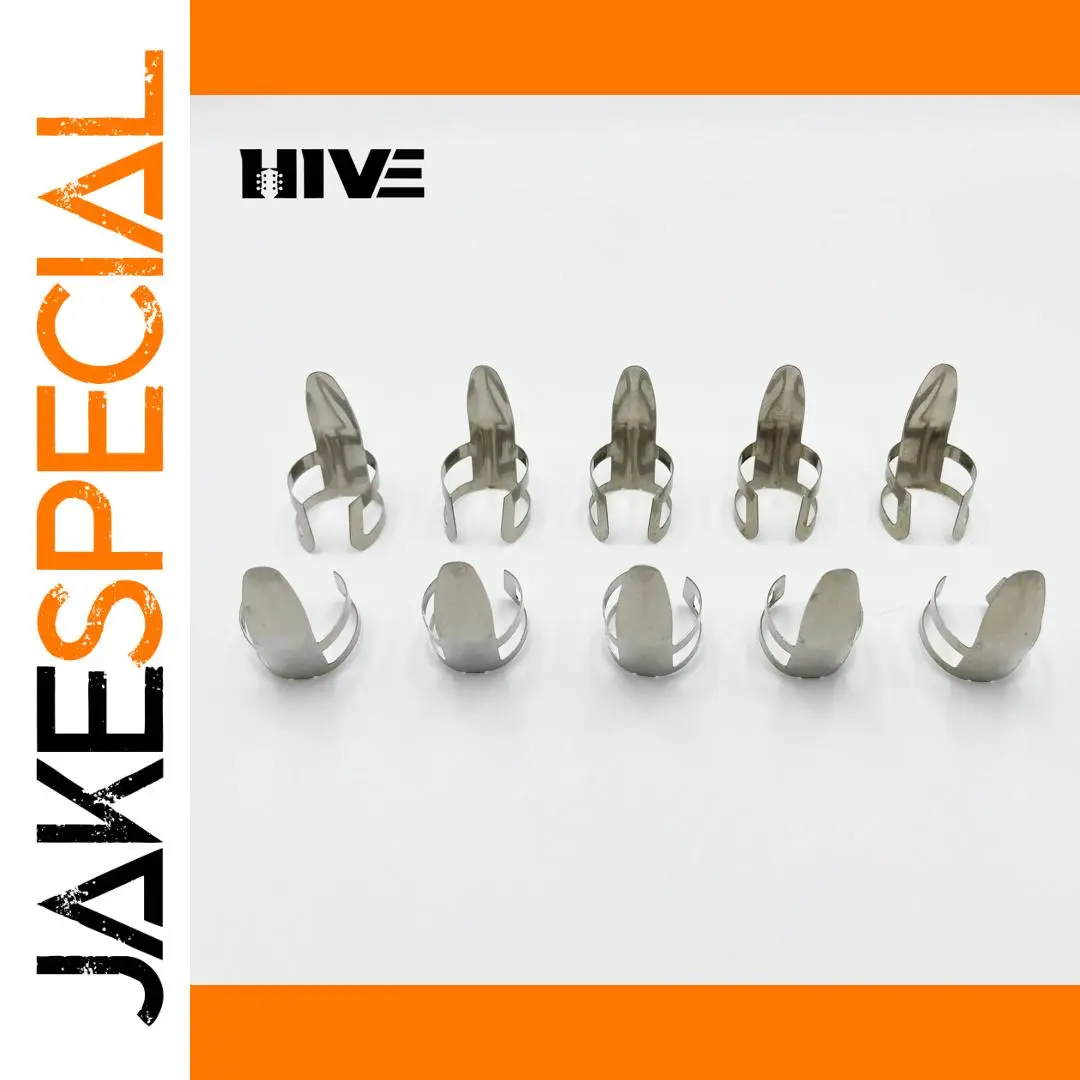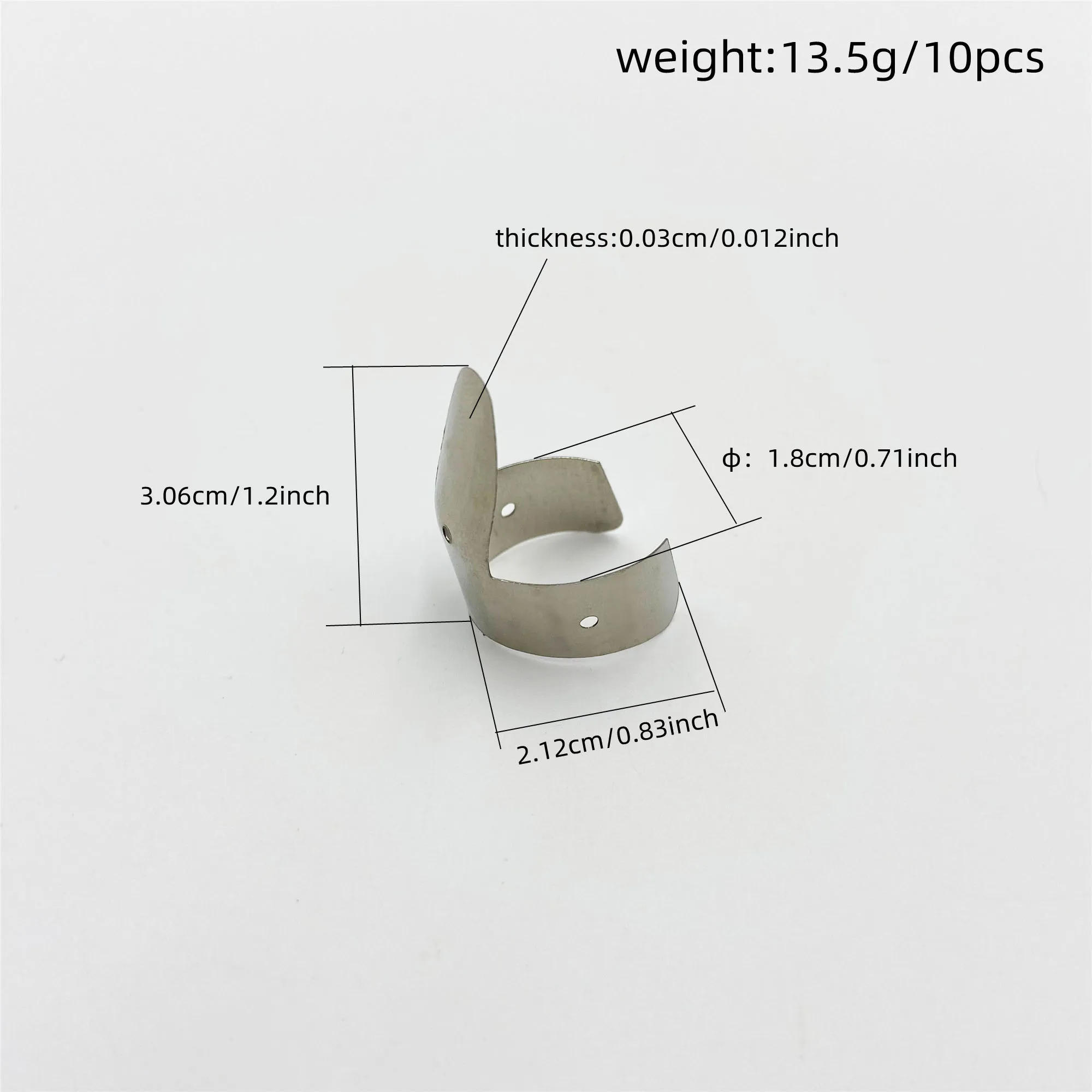 Immerse yourself in enhanced guitar and bass playing with this meticulously crafted set of ten stainless steel finger picks. Designed for durability and efficiency, each pick features a sleek, metallic silver finish that reflects light beautifully, adding a modern touch to your gear. The picks are thoughtfully shaped with a curved, semi-open design that wraps comfortably around your fingertip, while side cutouts provide flexibility and a secure fit. Available in two variants—five with large holes and five with small holes—they ensure a precise fit for different finger sizes. These picks are lightweight, weighing only 1.24 grams for the large-hole type and 1.35 grams for the small-hole type, making long practice sessions more comfortable. Perfect for enhancing speed, protection, and control.
