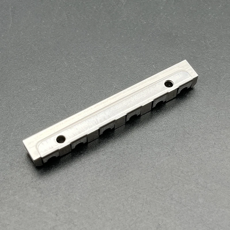 Experience the sleek, high-performance design of this precision CNC-machined stainless steel roller guitar nut. Measuring 43mm in length with an E-E distance of 35mm, it offers a durable, compact solution for upgrading your 6-string ST-style electric guitar. The polished natural metallic finish showcases modern craftsmanship and guarantees smooth, reliable string motion thanks to six freely rotating semi-circular roller wheels. The sturdy metallic casing secures the rollers perfectly in place, ensuring optimal tuning stability. Easy to install with two screws, this nut enhances your guitar’s tone and playability, giving you confident control over your instrument’s performance. Feel the difference in every note with its professional-grade construction designed for serious guitarists.