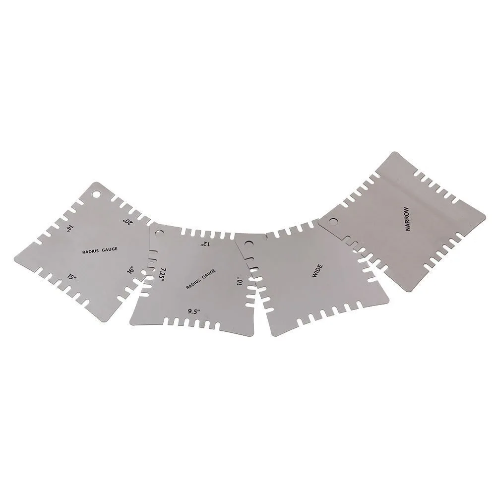 - Clear engraved measurement markings on each ruler enable quick, accurate curvature checks for guitar fingerboards of various sizes and styles.
