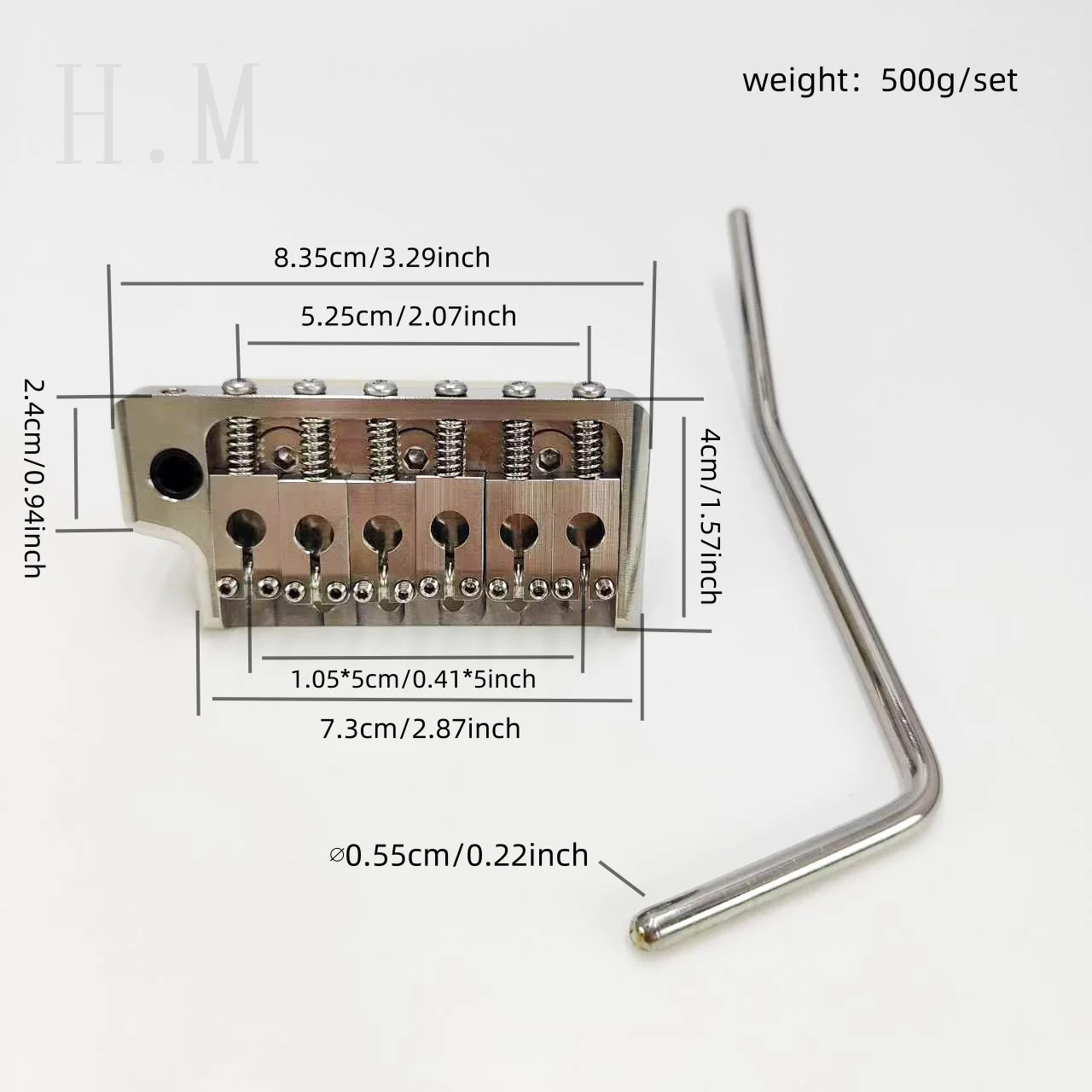 Experience precise tuning and reliable performance with this stainless steel single shake tremor guitar bridge set. Crafted with high-quality stainless steel components, including the bridge body, joystick, and springs, complemented by a brass base for durability. Weighing 500g per set, it features a string distance of 10.5mm and offers a sleek, polished finish free of defects and surface scratches. This professional-grade accessory includes a bridge body, three springs, a spring hook, eight screws, and a piano code adjustment wrench, making it ideal for guitar enthusiasts seeking a high-end upgrade to enhance their instrument’s vibrato and tonal versatility.