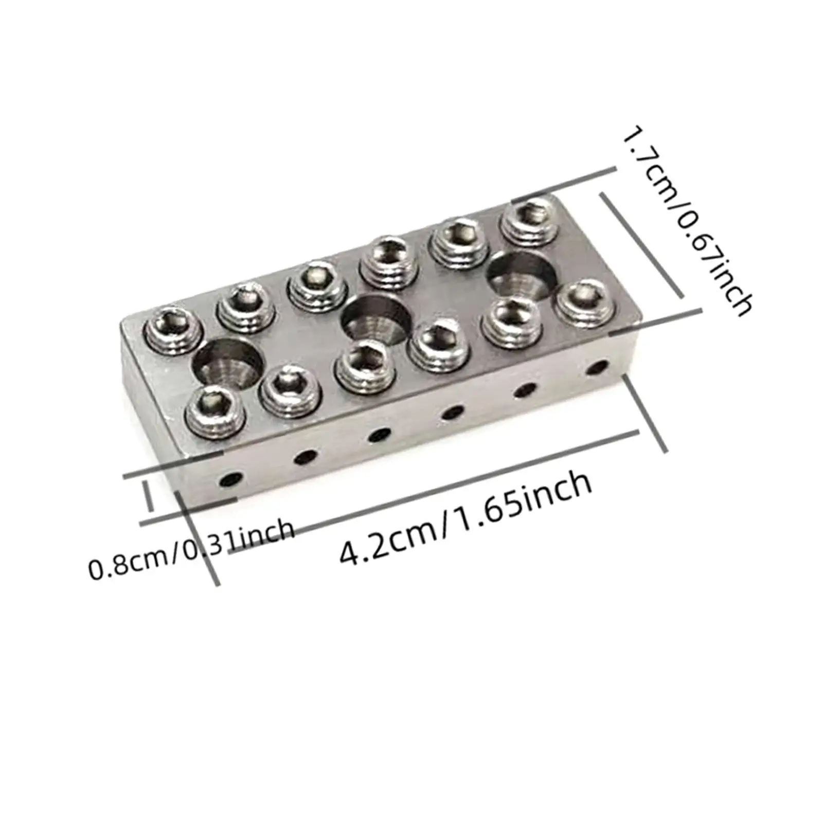 Imagine upgrading your headless electric guitar with this precision-engineered upper pillow body. Made of high-quality stainless steel, it offers exceptional durability, resistance to corrosion, and a sleek reflective finish. Its compact, rectangular design measures 4.2cm by 1.7cm by 0.8cm, ensuring a perfect fit without adding unnecessary bulk. Its organized circular and hexagonal threaded holes not only enhance the aesthetic appeal but also facilitate easy installation and adjustments. Whether you're a professional musician or an enthusiastic hobbyist, this component promises stability and performance to improve your guitar’s sound and functionality. Elevate your instrument with confidence, knowing you have a reliable, long-lasting upgrade tailored for your specific headless guitar model.