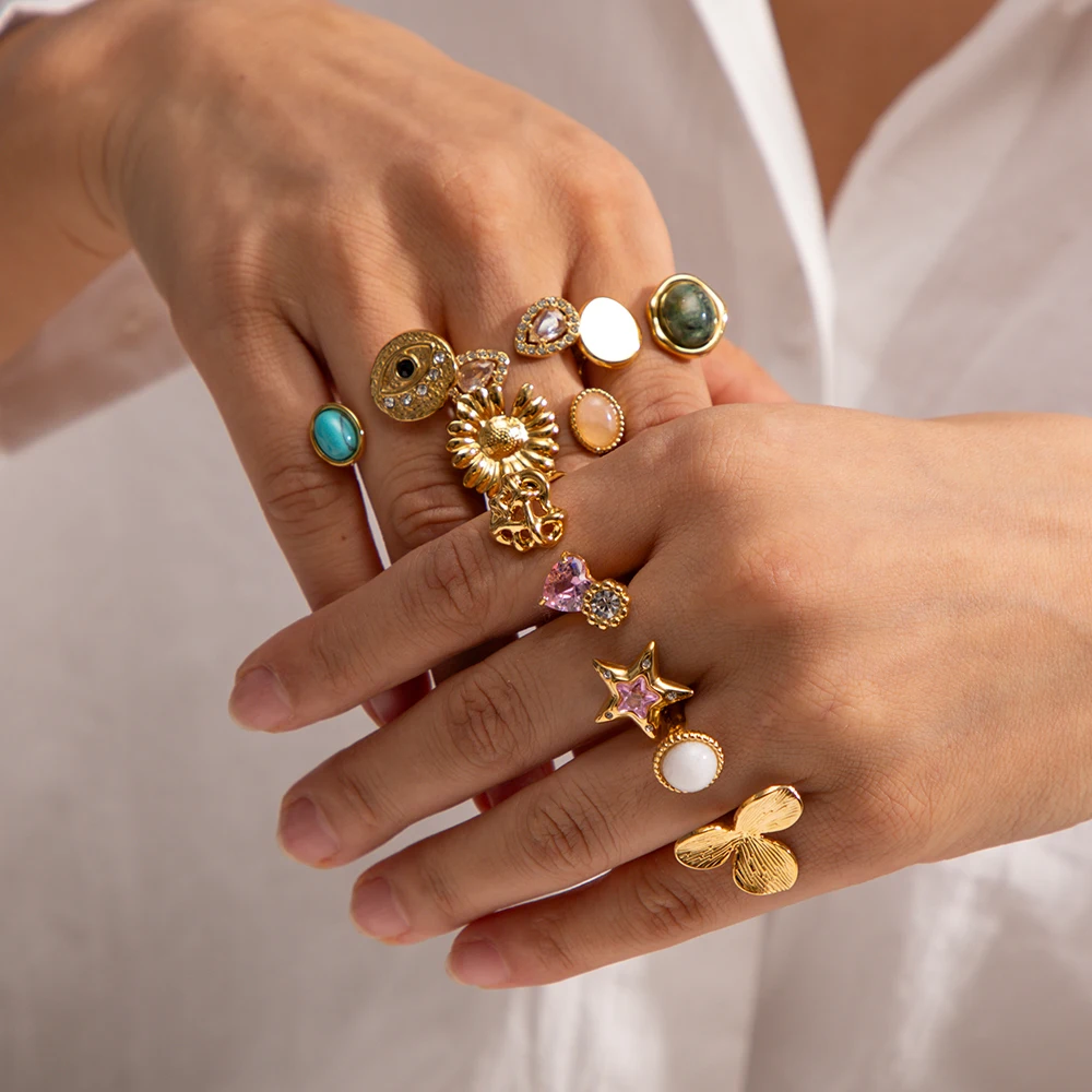 Imagine adding a playful yet elegant touch to your jewelry collection with this beautifully designed open ring. Crafted from durable stainless steel with a luxurious gold finish, it combines resilience with style. The ring features a delightful heart-shaped motif and whimsical star pattern, both adorned with sparkling cubic zirconia stones that catch the light perfectly. Its adjustable open band ensures a comfortable fit for any finger size, making it an ideal accessory for daily wear or special occasions. Whether you’re dressing up or keeping it casual, this versatile piece elevates your look with vibrant, youthful charm. Feel confident and stylish, knowing you’re wearing a high-quality, meticulously crafted ring that complements your unique personality.