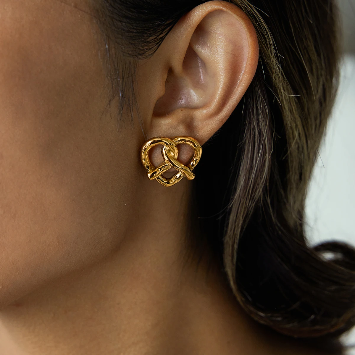 - Bold heart-shaped design with a textured, twisted surface offers a contemporary twist on classic jewelry, making a stylish statement with every wear.