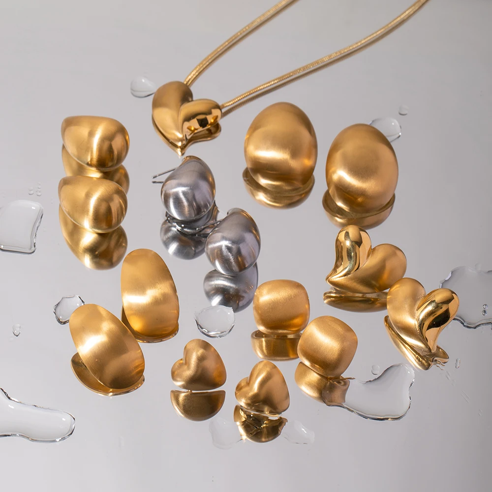 - Technical specifications: stainless steel material, glossy brushed finish, hypoallergenic, lightweight, bombé heart-shaped pendant, earrings with small heart accents, and versatile designs for modern women.