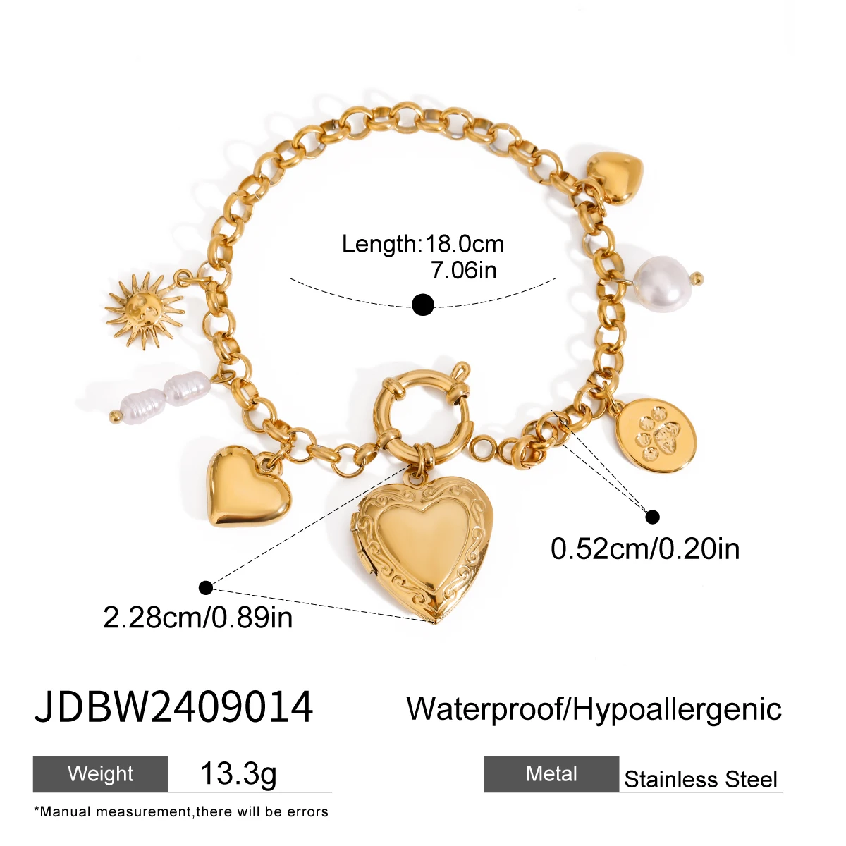 Enhance your jewelry collection with this trendy stainless steel bracelet featuring a sleek, polished heart-shaped pendant available in multiple metal color options. Crafted with durable PVD gold coating, it offers long-lasting shine that resists fading and scratching. Weighing approximately 15 grams, it is secured with a convenient lobster claw clasp, ensuring a secure fit. Fully waterproof, nickel-free, lead-free, and cadmium-free, this fashion-forward piece combines elegance with practicality, making it a versatile accessory suitable for everyday wear or special occasions. Show off your sophisticated style and enjoy lasting beauty with this stunning, high-quality bracelet designed for the modern woman.
