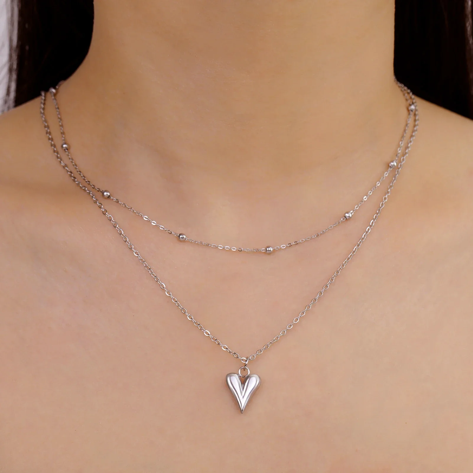 Imagine yourself wearing this stunning women's heart pendant necklace, radiating confidence and style. Crafted from durable stainless steel or luxurious gold-tone material, it features a sleek, polished heart-shaped pendant that reflects light beautifully. The contemporary design highlights smooth, rounded, slightly elongated shapes, adding a modern touch to any outfit. The fine, tubular snake chain can be styled as a double-layered or simple single chain, allowing you to match your mood or occasion. Its versatile length fits comfortably around your neck, perfect for daily wear or special events. With high-quality craftsmanship, this necklace elevates your look effortlessly, making it a treasured addition to your jewelry collection.