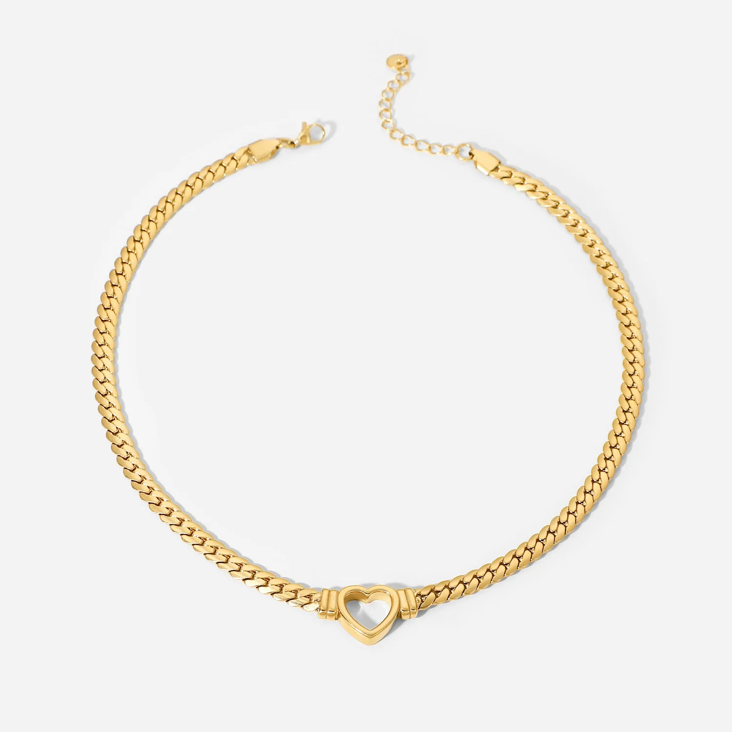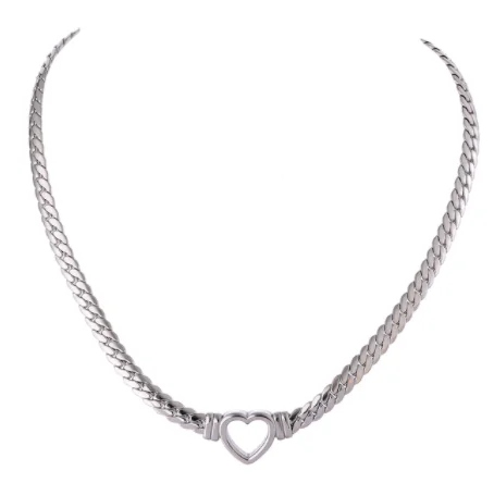Elevate your style with this stunning stainless steel necklace featuring a delicate hollow heart pendant. The flat snake chain has a sleek, glossy gold finish that resists tarnishing, ensuring long-lasting brilliance. Measuring 17+2″, it’s fully adjustable to fit comfortably, making it ideal for both casual and party occasions. Its modern geometric design pairs effortlessly with your favorite outfits, adding a touch of elegance and edginess. Whether you want to enhance your daily look or sparkle at special events, this necklace offers versatile appeal. Crafted from durable stainless steel, it’s perfect for those who love fashionable accessories that combine style with resilience. Make this your go-to piece for expressing your personal style with confidence and grace.