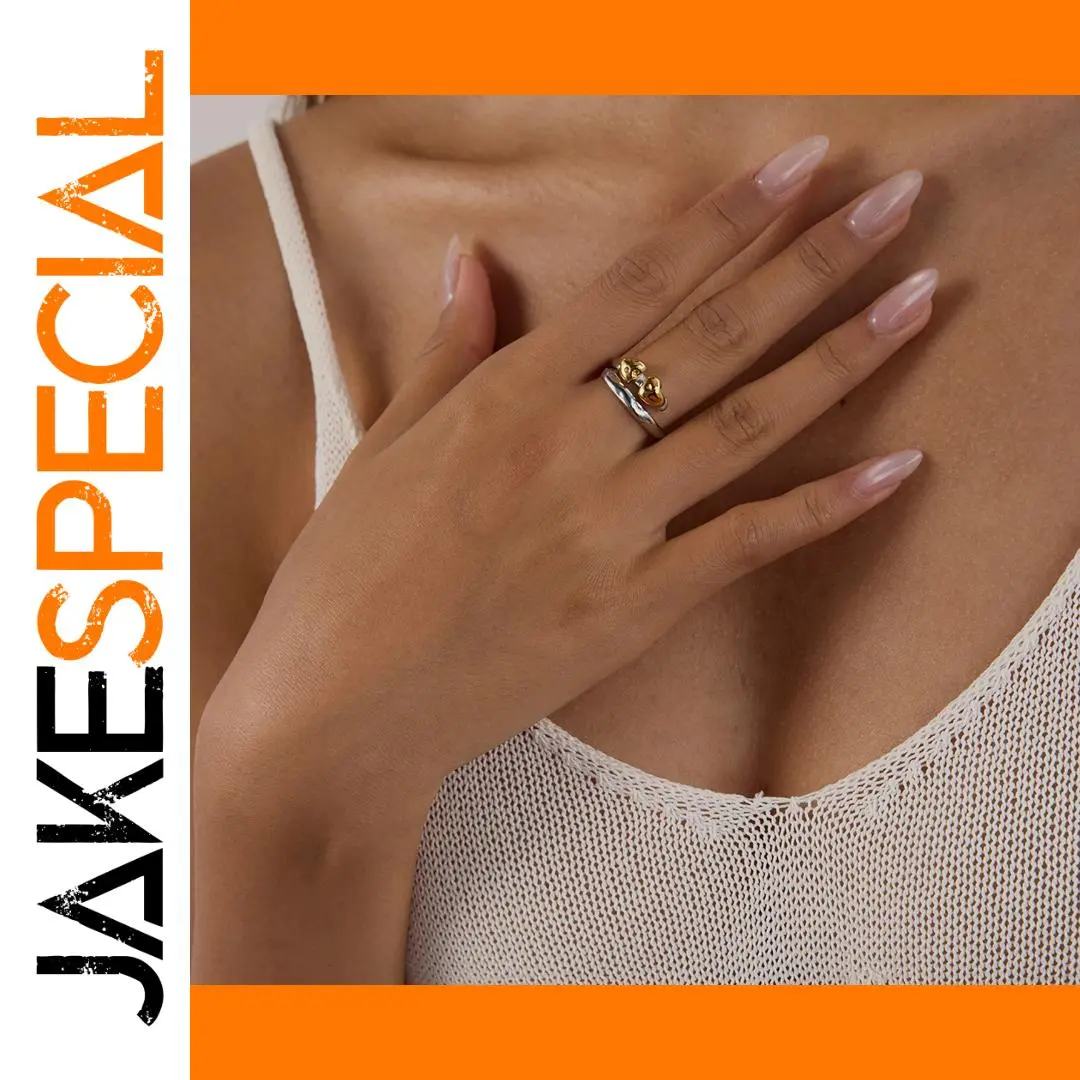 Experience elegance with this stunning stackable ring set crafted from high-quality stainless steel. Featuring two delicate, shiny gold-colored heart-shaped bands and a silver-colored textured ring, it offers a perfect blend of simplicity and charm. The rings' water drop-shaped pattern and sleek design make them ideal for enhancing casual or formal outfits. Their minimalist aesthetic, combined with polished surfaces and subtle contrast, creates an understated yet refined look. Whether for a special occasion or everyday wear, these rings add a touch of sophistication and femininity. With a comfortable fit, they can be stacked easily for a personalized style or worn separately for a minimal look. Discover a versatile accessory that complements your unique style effortlessly.