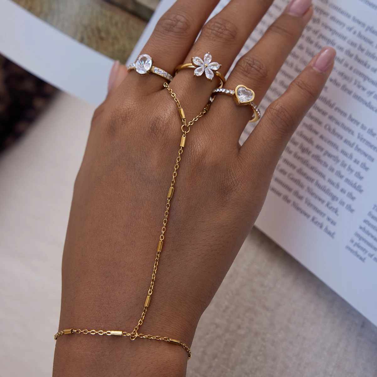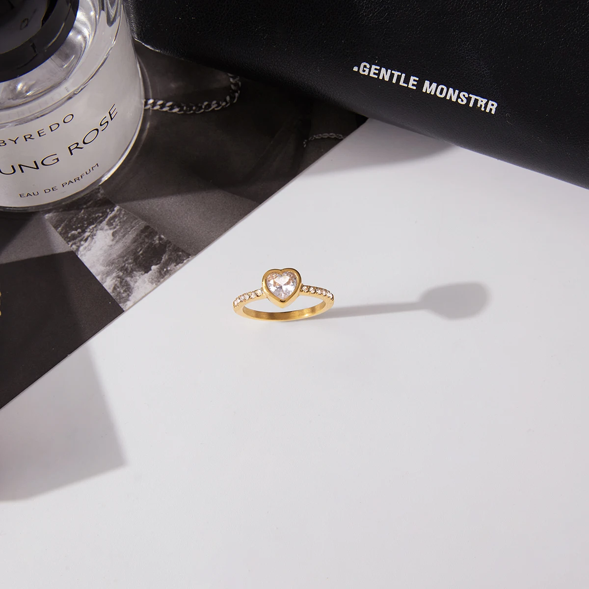 Enhance your jewelry collection with this elegant women’s waterproof stainless steel ring, featuring a 2mm wide gold-tone band adorned with a heart-shaped zircon inset secured by a modern bar setting. The design combines a delicate, feminine aesthetic with trendy fashion elements, perfect for celebrating special occasions like birthdays and Valentine’s Day. Its platinum-like cladding provides a sleek, lustrous finish, while the heart motif adds a touch of romantic charm. Compatible universally, this lightweight and durable piece is an ideal accessory for those seeking refined, modern jewelry that expresses elegance and love. Model number: JDR0307028-7.