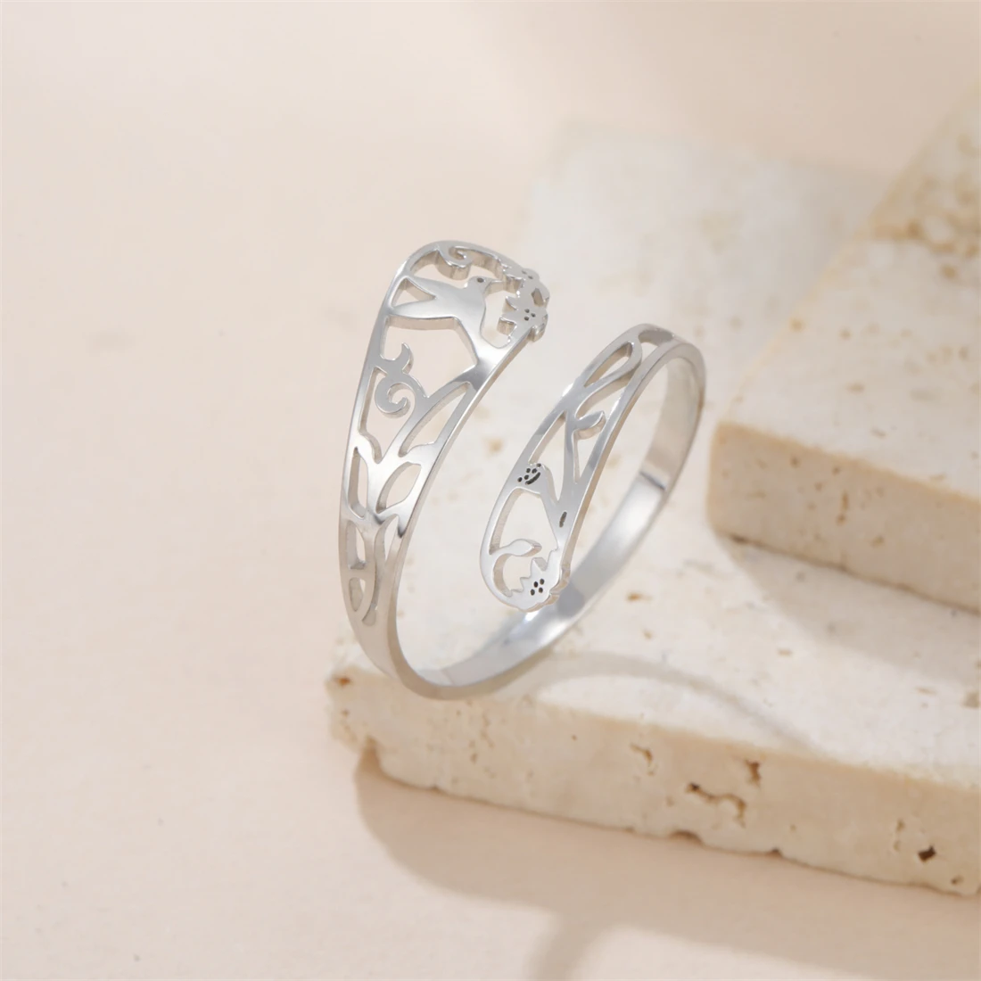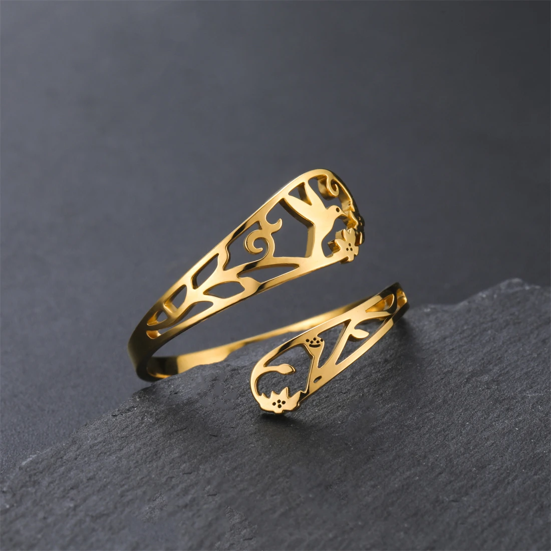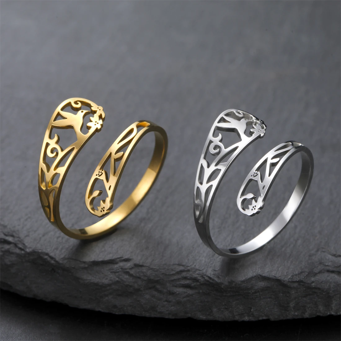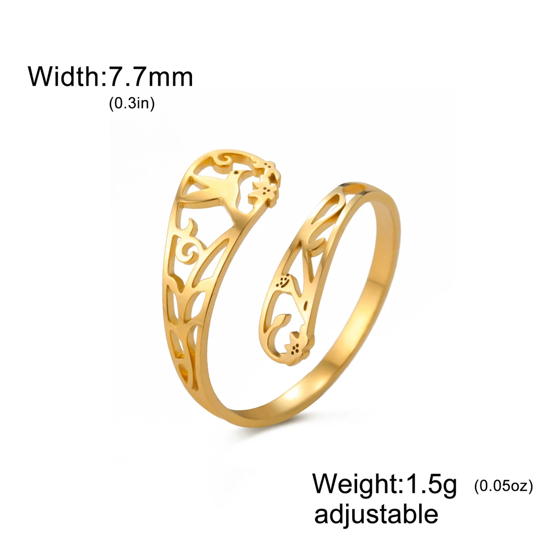 Elegant Stainless Steel Hollow Hummingbird Rings