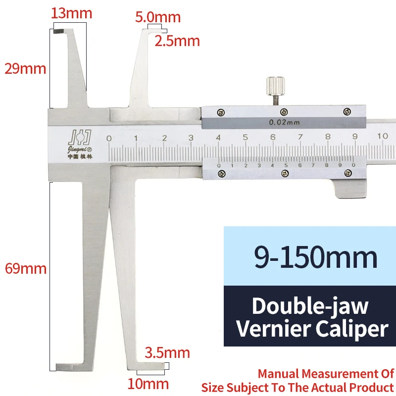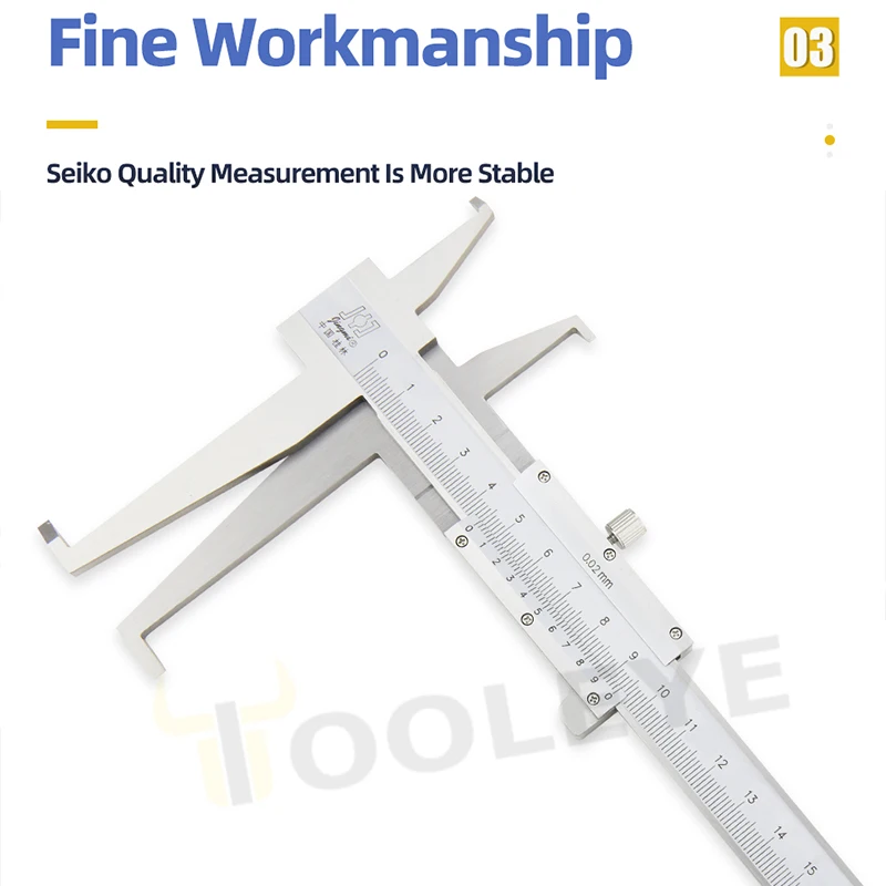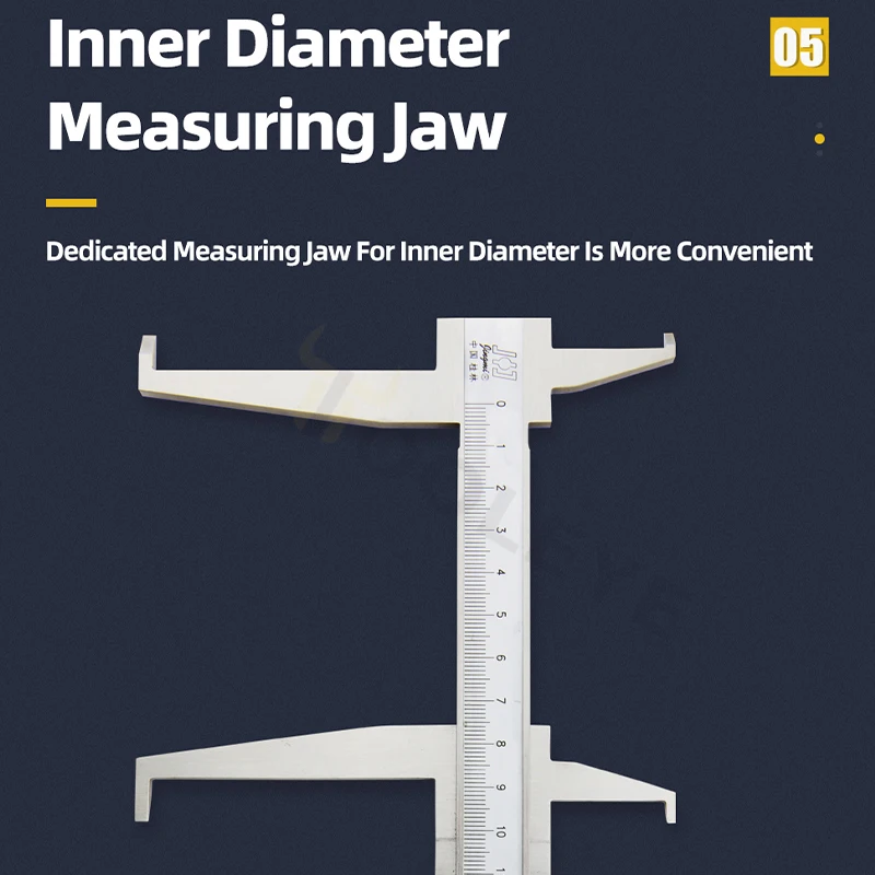 Experience precise measurements with this stainless steel inside groove vernier caliper, available in ranges of 9-150mm, 9-200mm, or 9-300mm, featuring a high accuracy of 0.02mm. Its laser-etched scale ensures durability and easy readability, while a hardened, quenched ruler body guarantees wear resistance over time. The design includes specialized inner diameter measuring claws for accurate inner hole measurements, making it ideal for woodworking and metalworking projects. Its sleek, polished finish offers a professional, modern look, combining stability, rust-resistance, and precision—perfect for those who demand reliability and accuracy in their measuring tools.