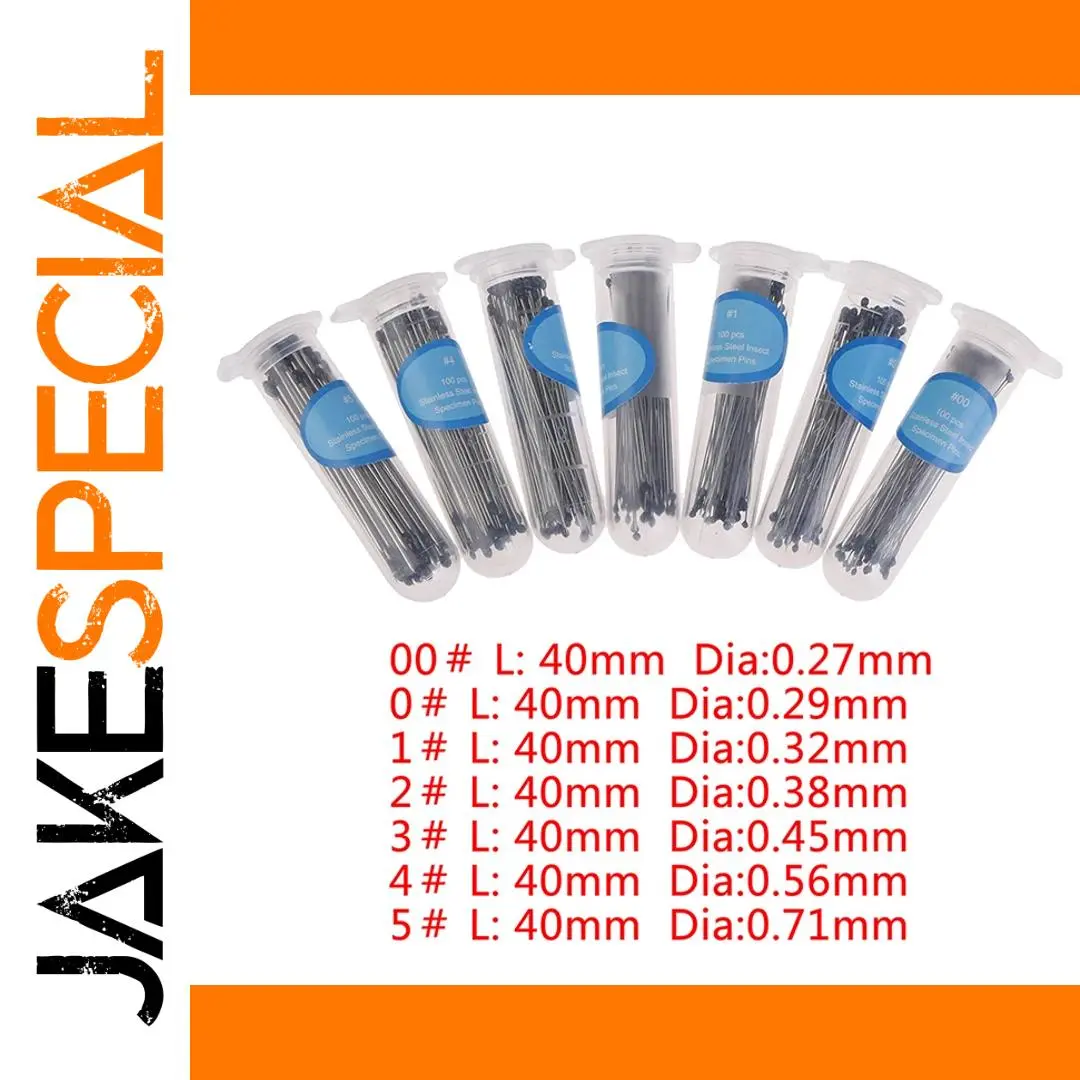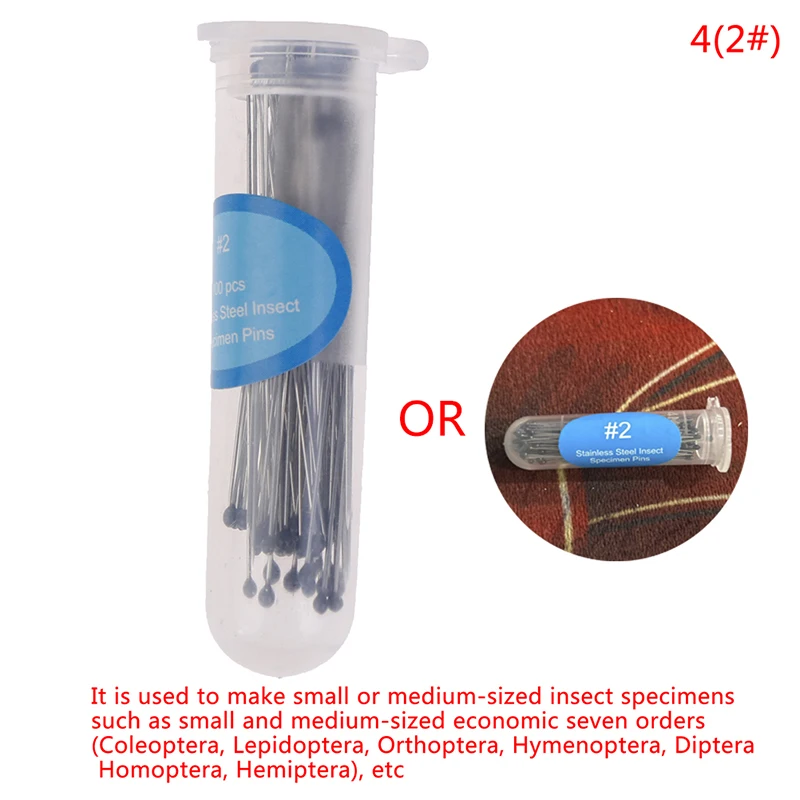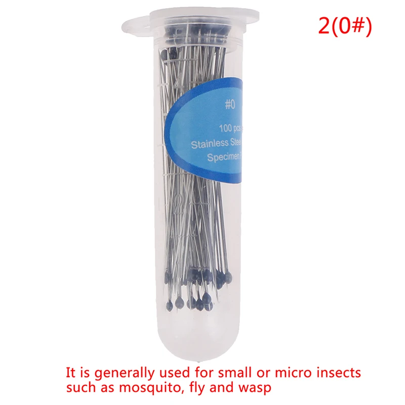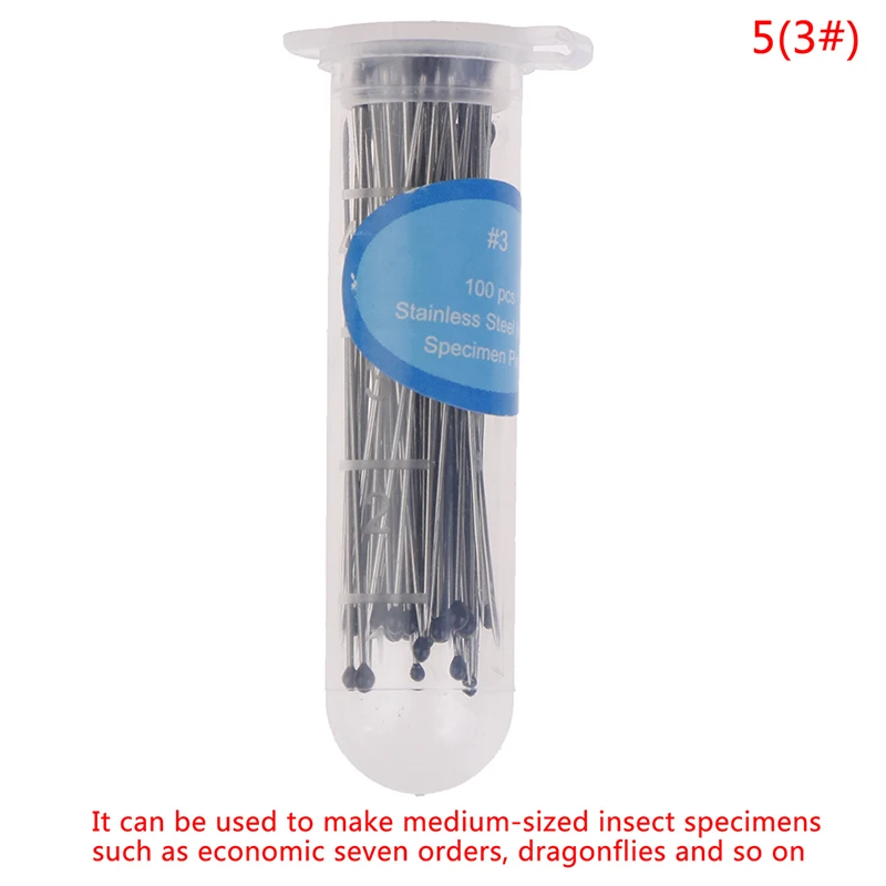 Imagine having the perfect set of insect pins for every specimen you encounter, organized and ready for detailed work. This set includes 100 stainless steel insect pins, each precisely 40mm long with diameters from 0.27mm to 0.71mm, perfectly suited for tiny micro insects like mosquitoes and flies, medium-sized insects such as beetles or dragonflies, and larger specimens like cicadas or heavy-bodied insects. The pins come in seven sizes with clear blue labels for easy identification and are stored securely in a transparent plastic tube, ensuring you always have the right tool at hand for entomology, specimen mounting, or collection projects.