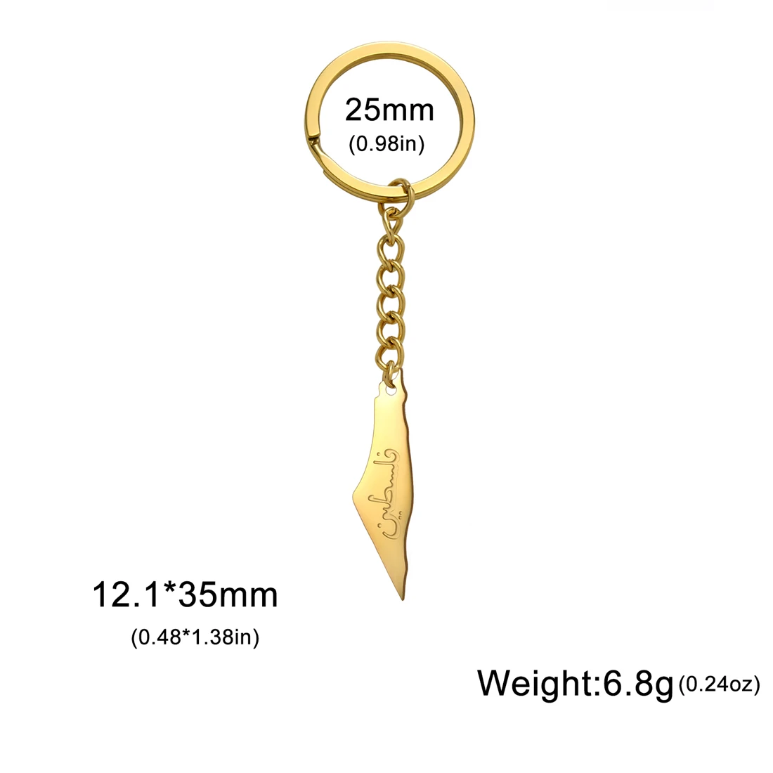 Experience the perfect blend of cultural symbolism and modern minimalism with this beautifully crafted stainless steel keychain. Measuring 12.1 x 35mm, it features a sleek, polished finish available in elegant silver and gold tones. The keychain showcases a minimalistic outline of the Israel-Palestine map, engraved with fine detail that emphasizes its vintage and classic aesthetic. Its unisex design makes it suitable for everyone—whether you’re a woman, man, or couple—adding a touch of meaningful style to your everyday essentials. The durable stainless steel construction ensures longevity, while the easy-to-use clip makes it simple to attach to keys or bags. Elevate your accessories with this refined piece that reflects cultural pride and contemporary taste.