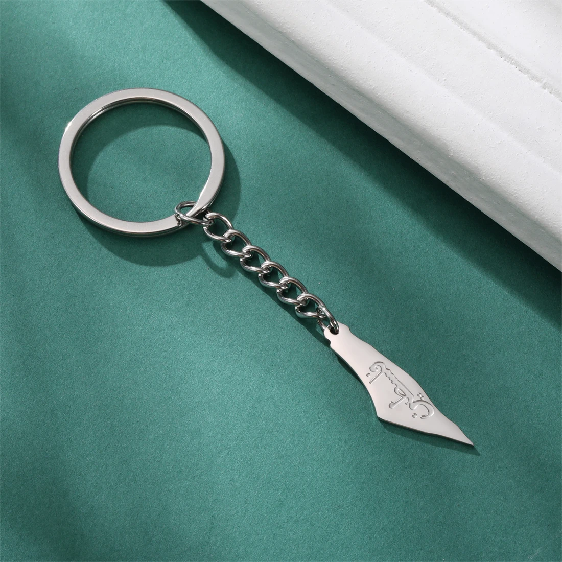 - This stainless steel keychain measures 12.1mm by 35mm, combining compact size with a distinctive cultural outline engraved in fine detail for timeless appeal.