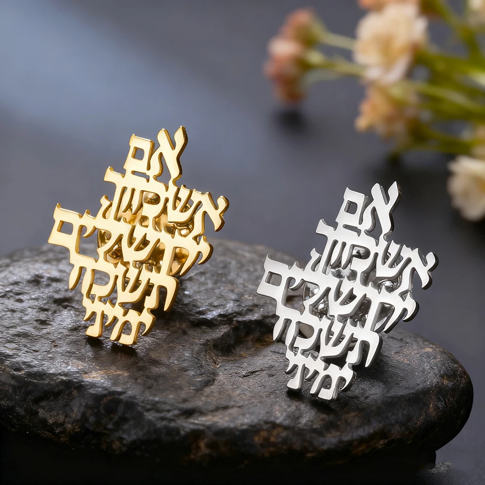Experience the timeless beauty and profound symbolism of this stainless steel Jerusalem brooch. Crafted with polished, reflective surfaces, it features a geometric, snowflake-inspired design enhanced by intertwined Hebrew characters. The phrase “Im eshkachech Yerushalayim” (“If I forget you, O Jerusalem”) is delicately cut out, creating an intricate and meaningful visual statement. Its versatile size and classic style make it a perfect accessory for daily wear or special occasions, embodying tradition and reverence. Available in two stunning color options—steel and gold—the brooch adds a refined touch to any outfit. Gift yourself or a loved one this exquisite piece of jewelry that celebrates cultural heritage and spiritual devotion.