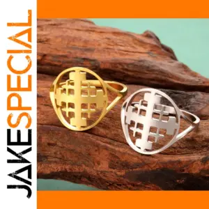 Celebrate your faith with this high-quality stainless steel ring featuring a prominent Jerusalem cross symbolizing the Five Wounds of Christ, the Evangelists, or the four corners of the world. Available in sizes 6 to 13, with measurements from 16 cm (size 6) to 23 cm (size 13), and approximately 15mm wide, it offers a bold, modern aesthetic. Choose between sleek steel or gold-tone finishes, perfect for men, women, and couples seeking a durable, lightweight piece with a contemporary religious motif. Crafted from premium stainless steel, this fashion-style wedding band combines durability and symbolism for a meaningful statement accessory.
