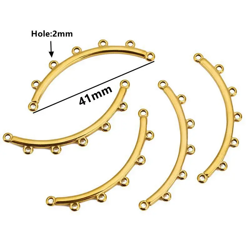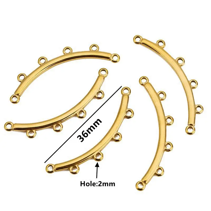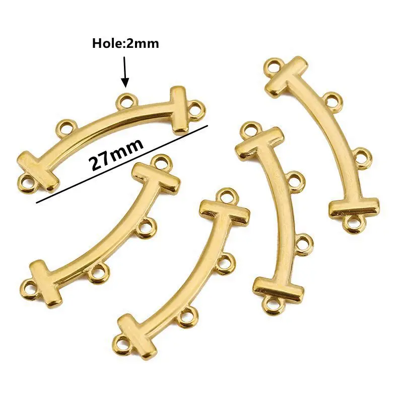 Enhance your DIY jewelry projects with this set of five stainless steel connectors available in sizes 23/27mm, 30/33mm, 36/38mm, and 41/44mm, each featuring a 2mm hole for versatile attachment. Crafted from durable stainless steel with options in sleek silver-tone or luxurious 18K gold-plated finishes, these connectors boast a porous clasp design perfect for multi-strand necklaces and bracelets. Their classic yet trendy style makes them suitable for a variety of jewelry themes, allowing you to create layered, multi-strand pieces with ease. Designed for jewelry enthusiasts, these findings ensure a secure connection while adding a refined touch to your handmade accessories.