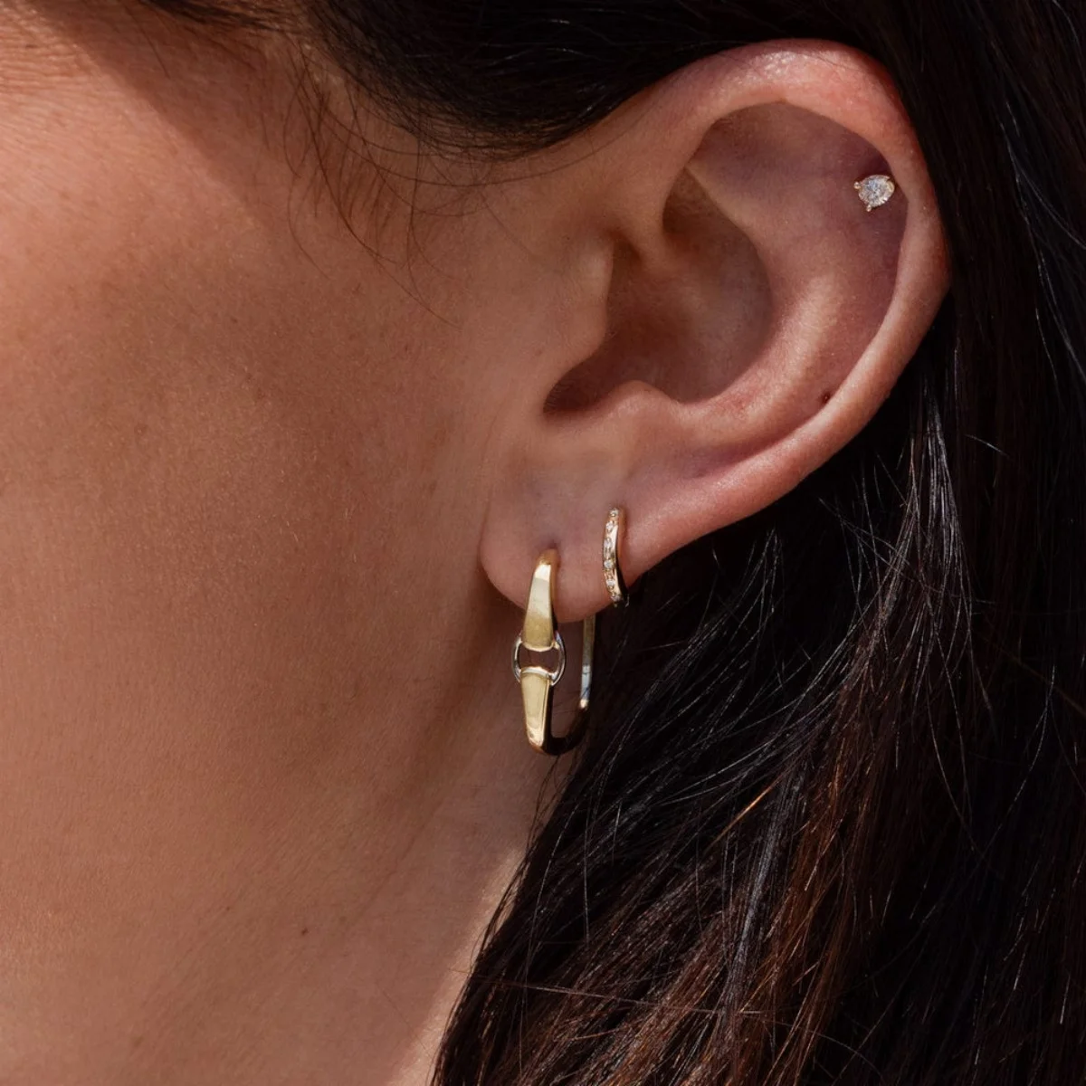 - Includes five versatile pieces: two open cuff-style bangles, two small hoop earrings, and two geometrical rings—one chunky and one delicate—highlighting minimalist, rounded shapes.