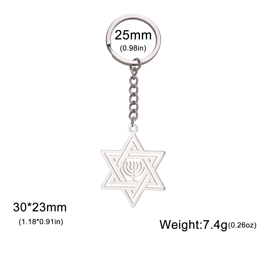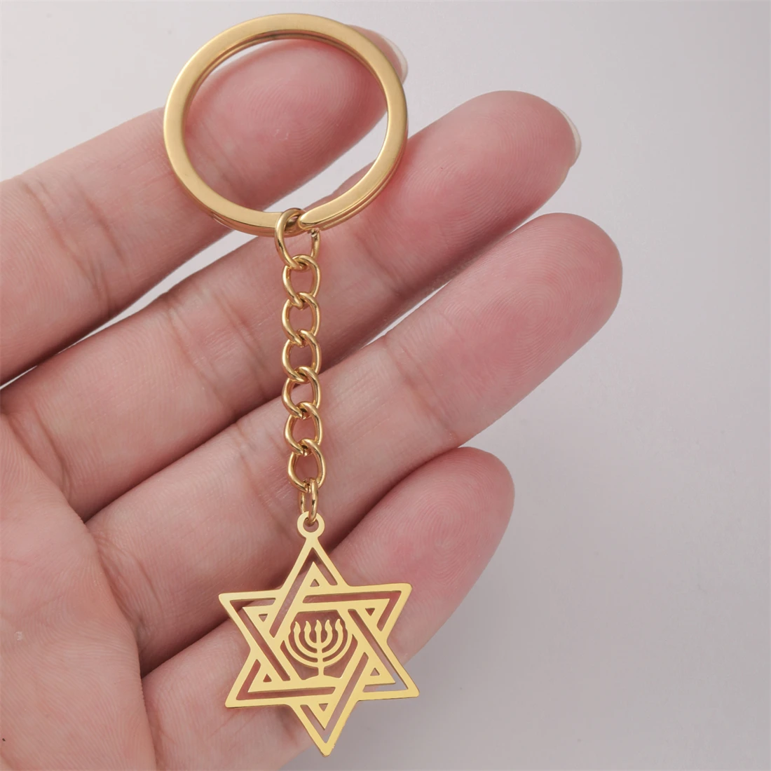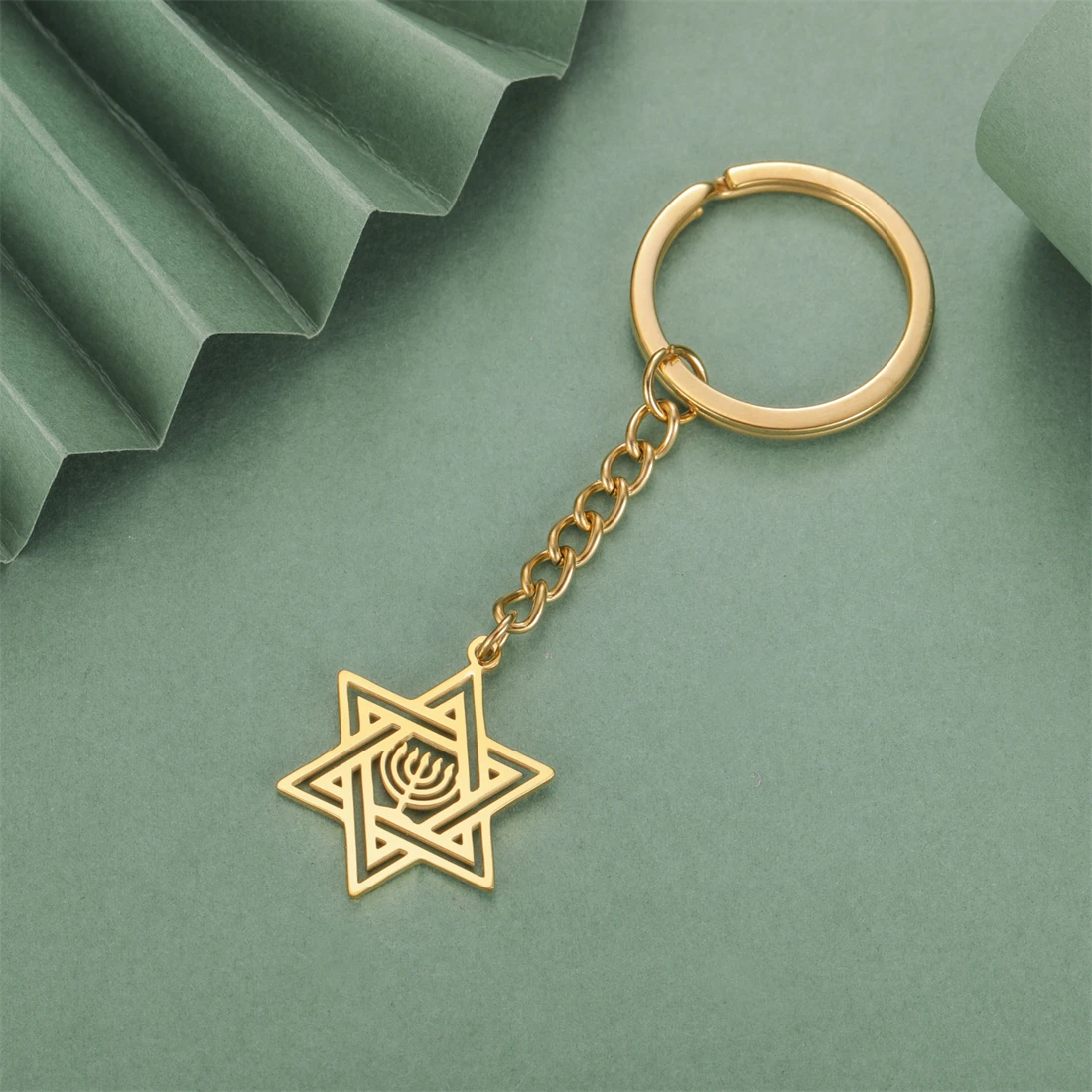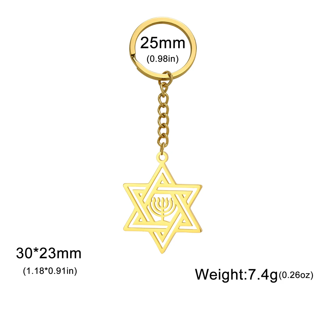 Imagine owning a beautifully crafted keychain that combines elegance with cultural significance. This keychain features a sleek Jewish Star of David design, measuring approximately 30mm by 23mm, available in stunning gold and silver finishes. Its minimalist and vintage-inspired style makes it a versatile accessory suitable for daily wear or special occasions. Crafted from durable stainless steel, it resists rust, corrosion, and fading, ensuring long-lasting beauty. The polished surface reflects light elegantly, highlighting the star and menorah symbols, making it a meaningful yet fashionable piece. Whether you want a thoughtful gift or a personal keepsake, this keychain seamlessly blends spiritual symbolism with modern design. It’s perfect for celebrating faith, culture, or commemorating special moments.