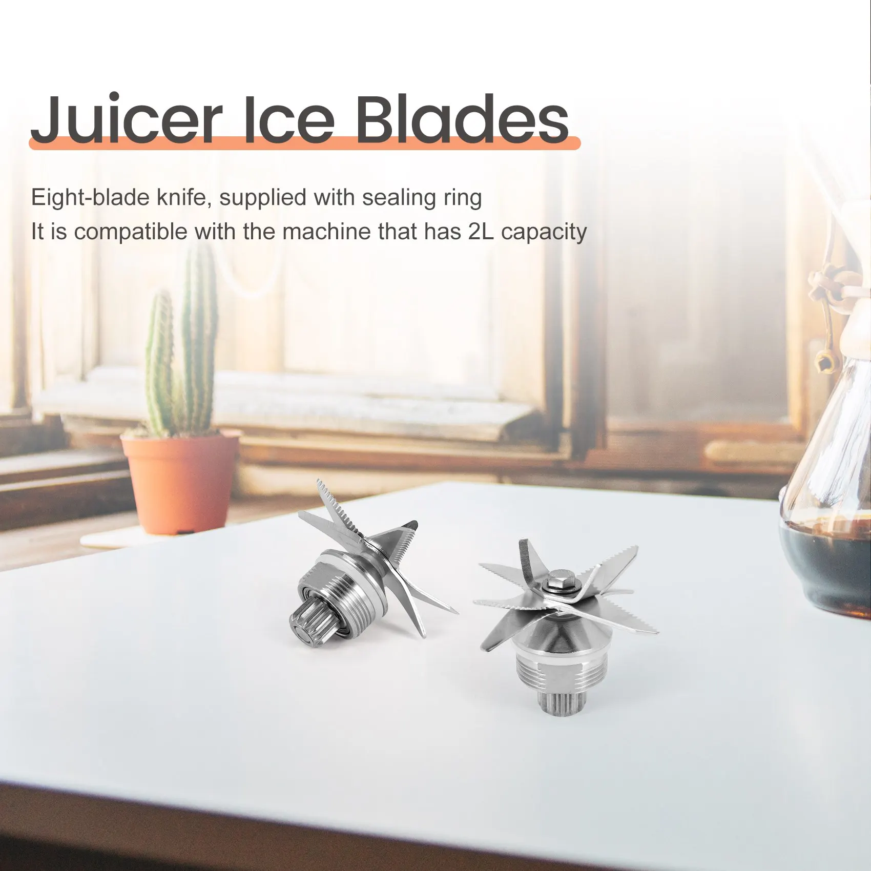 - This stainless steel eight-blade assembly features sharp, serrated edges designed for maximum cutting efficiency, ideal for crushing ice, fruits, and vegetables quickly and thoroughly in your juicer.
