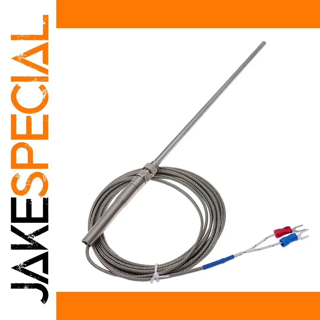Experience precision and reliability with this this stainless steel thermocouple sensor, perfect for industrial temperature measurement. Its sleek, 200mm long cylindrical probe with a 5mm diameter provides easy insertion into various environments. The reflective metallic surface ensures durability and corrosion resistance, suitable for demanding applications. Attached to a braided stainless steel flexible cable, the sensor combines strength with flexibility, available in lengths from 1m to 5m to fit your setup. The exposed red and blue wires at the end facilitate straightforward electrical connections. Designed to seamlessly integrate with K-type temperature measurement systems, this sensor offers accurate, consistent readings in temperature ranges of 0-400°C. Its M8×1.25 screw connection guarantees secure attachment, making it an essential tool for professionals requiring precise thermal data.