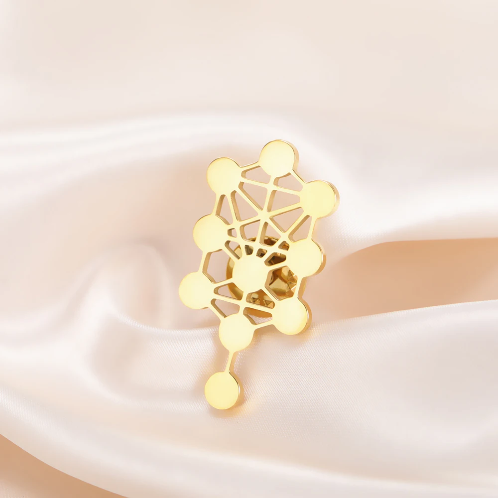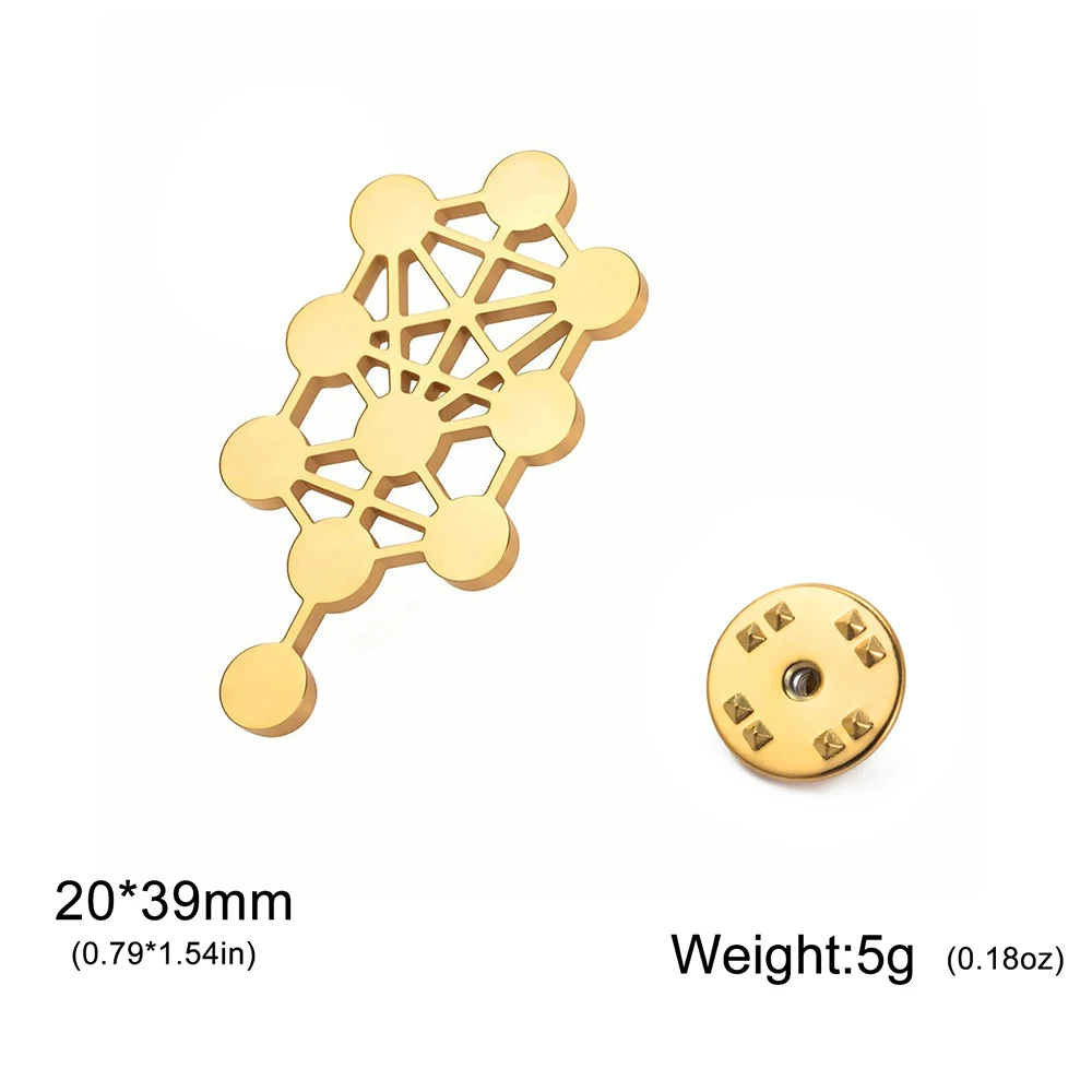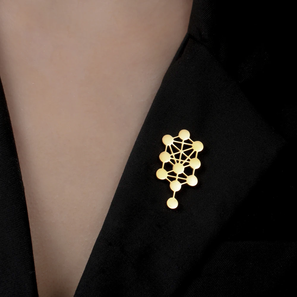 Discover the beauty of sacred geometry with this stunning Kabbalistic Tree of Life brooch by Dawapara. Exquisitely crafted from stainless steel, it features a sleek, elongated round design measuring 20 x 39 mm, perfect for adding a touch of meaningful elegance to any attire. Available in both steel and warm gold colors, this vintage-style pin captures intricate cutouts of the interconnected spheres and lines symbolizing the Sephirot. Its smooth, highly polished surface reflects light beautifully, accentuating its refined craftsmanship. Whether worn for special occasions or daily adornment, this versatile accessory complements men, women, and couples alike. Its minimalist yet deeply symbolic aesthetic makes it not just jewelry but a meaningful statement piece.