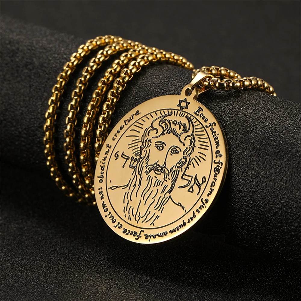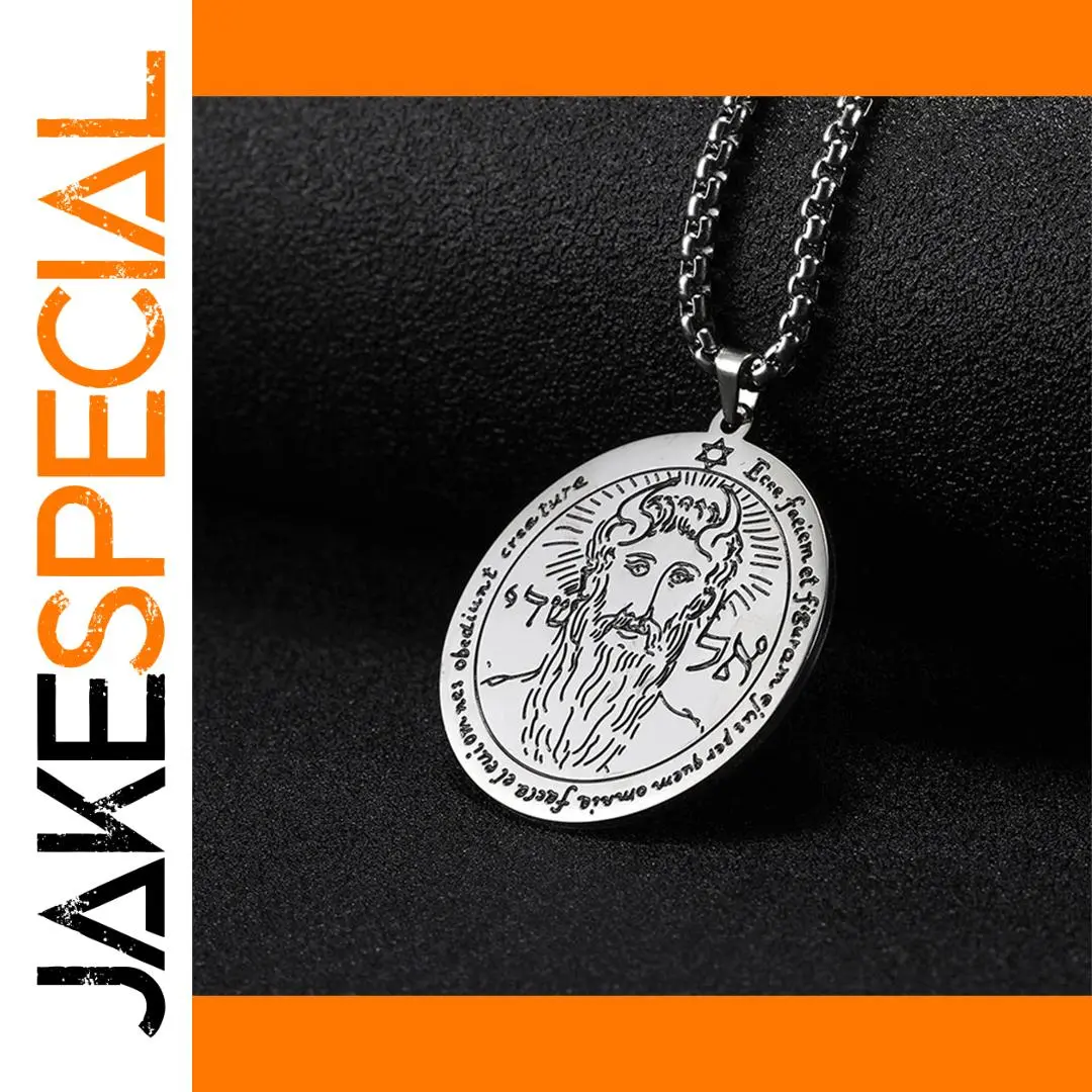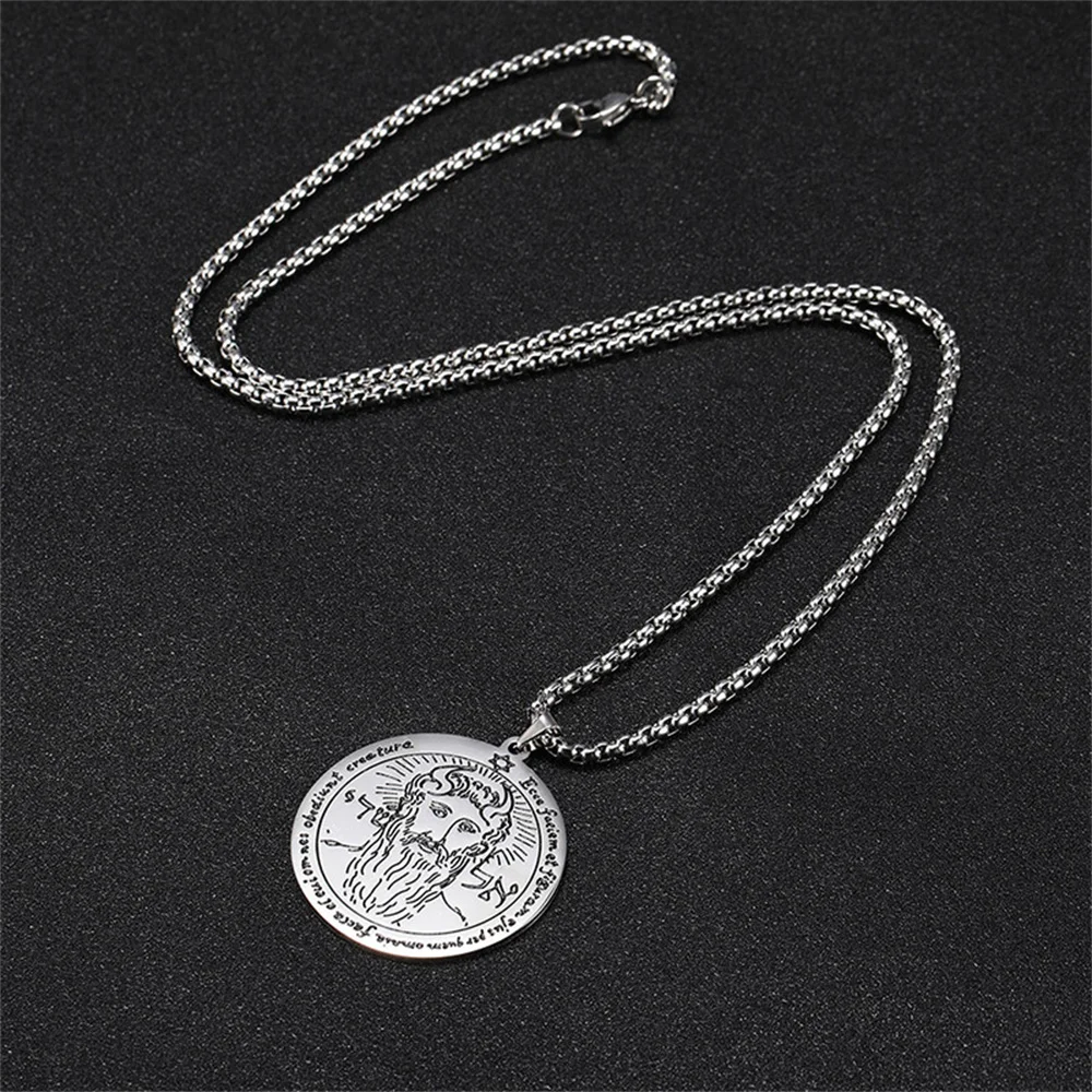 This stainless steel pendant necklace features a round Key of Solomon symbol measuring 35×38mm, available in sleek silver and gold tones. Paired with a durable 60cm link chain that resists rust, corrosion, fading, deformation, and hypoallergenic, it offers a stylish blend of vintage and minimalist aesthetics. Designed for men, boys, and couples, its robust construction and timeless appeal make it perfect for various occasions including birthdays, anniversaries, weddings, parties, or travel. Whether worn daily or for special events, this necklace combines fashion, tradition, and lasting quality, making it a meaningful accessory that complements any wardrobe.