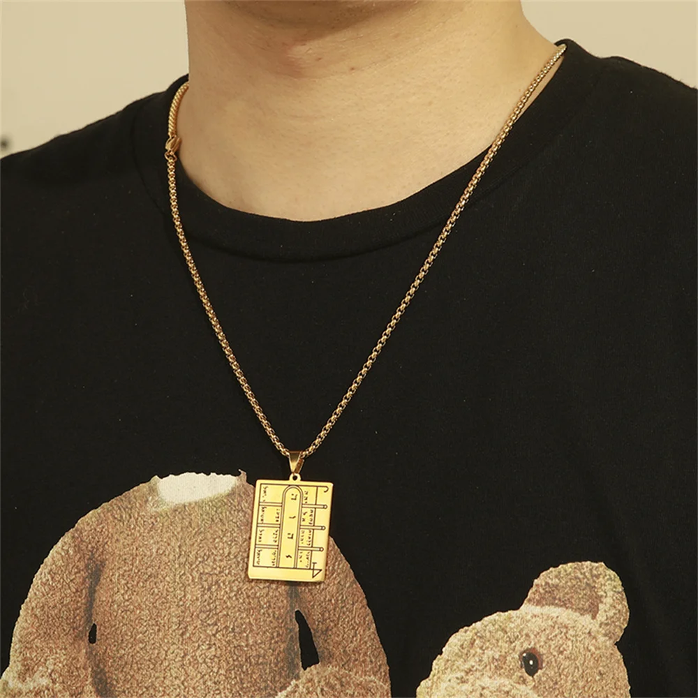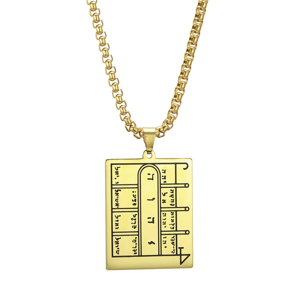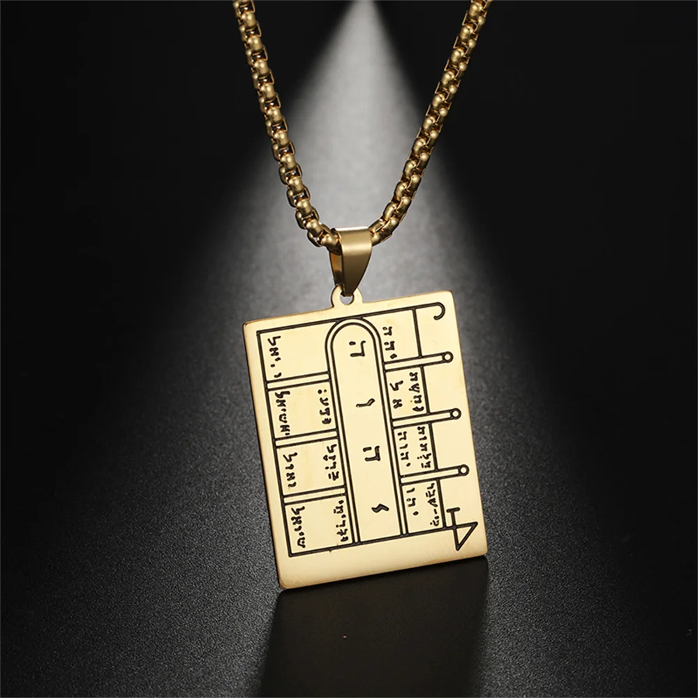Discover the timeless elegance of this this Key of King Solomon Pentacle Necklace, crafted with meticulous attention to detail. Featuring a striking square pendant engraved with intricate occult symbols, lines, and Hebrew-inspired script, this jewelry piece exudes vintage charm and spiritual significance. The pendant measures approximately 28.3mm by 37.8mm, elegantly framed within a polished, smooth metal border. Paired with a 60cm stainless steel chain, available in luxurious gold or sleek silver tones, this necklace combines durability with style. Its reflective metallic finish highlights craftsmanship and adds luminous brilliance, making it perfect for both everyday wear and special occasions. Whether you're seeking a meaningful talisman or a stylish accessory, this necklace elevates your look with subtle sophistication and powerful symbolism.