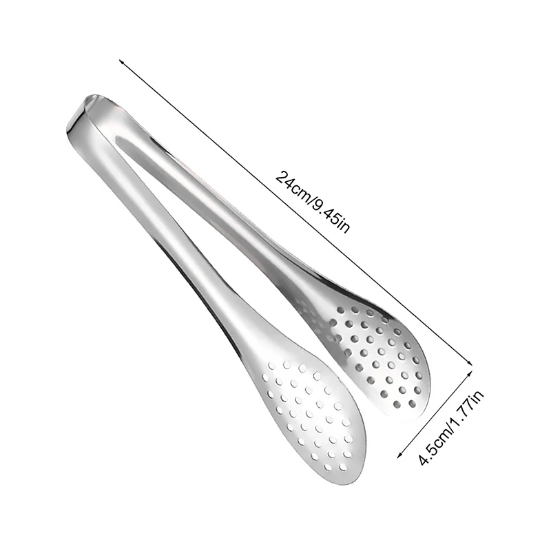 Experience the perfect combination of style and function with this high-quality stainless steel food tong. Crafted with a polished silver finish, these tongs bring a modern touch to your kitchen. Their elongated design provides excellent reach, helping you handle food easily whether grilling, serving, or tossing salads. The hollowed-out, perforated gripping ends allow excess liquid to drain, making food handling neater and more efficient. Equipped with a locking mechanism, these tongs are easy to store without taking up much space. Their heat resistance and dishwasher-safe material ensure durability and convenience. Ideal for professional chefs and home cooks alike, these tongs elevate your culinary experience while adding a sleek aesthetic to your kitchen tools.